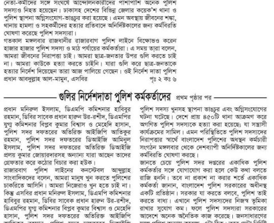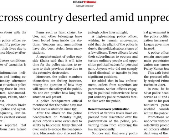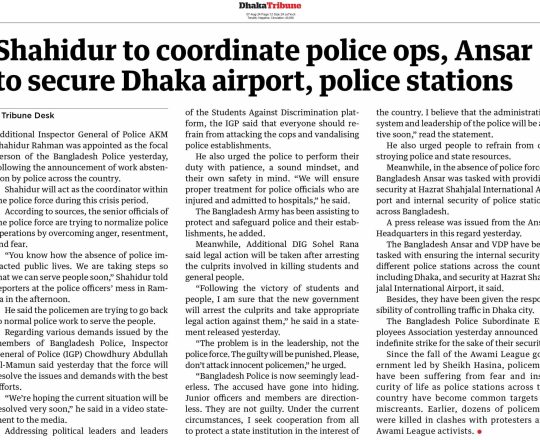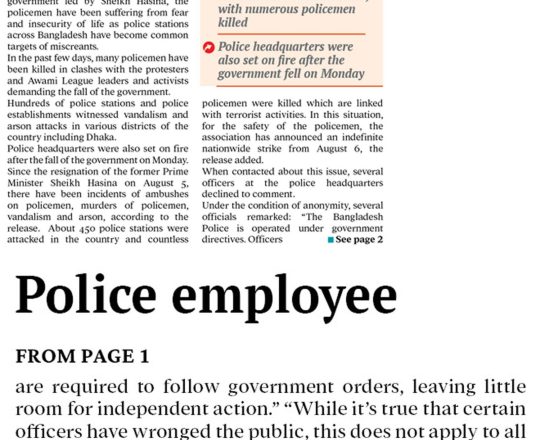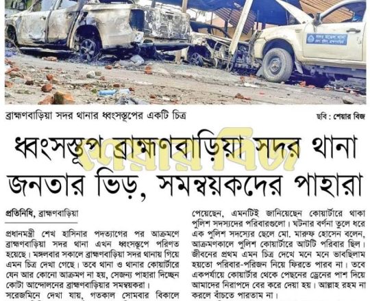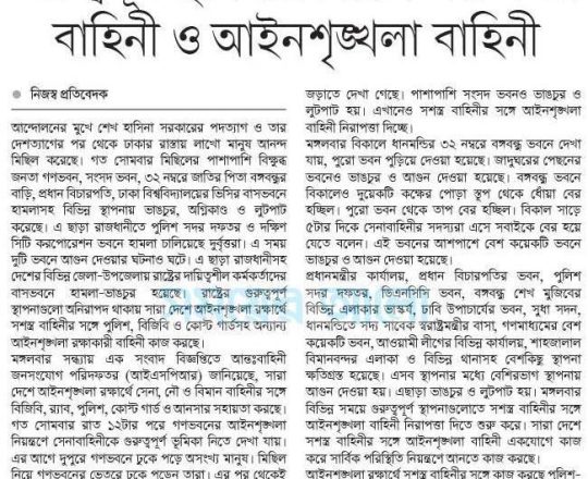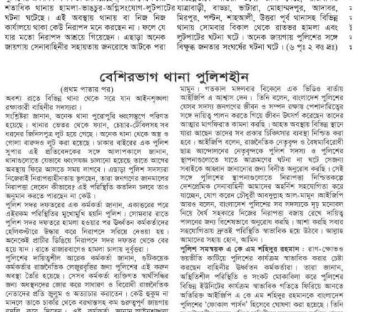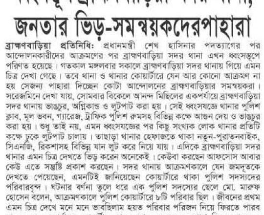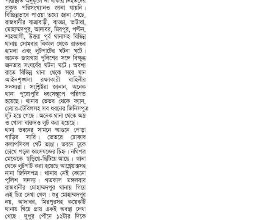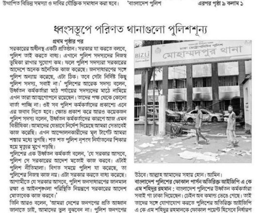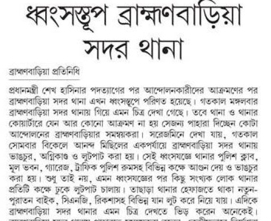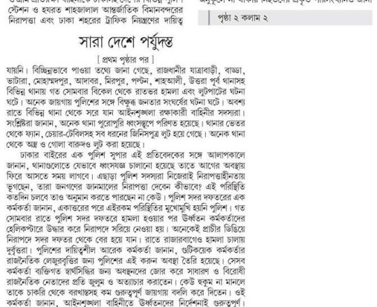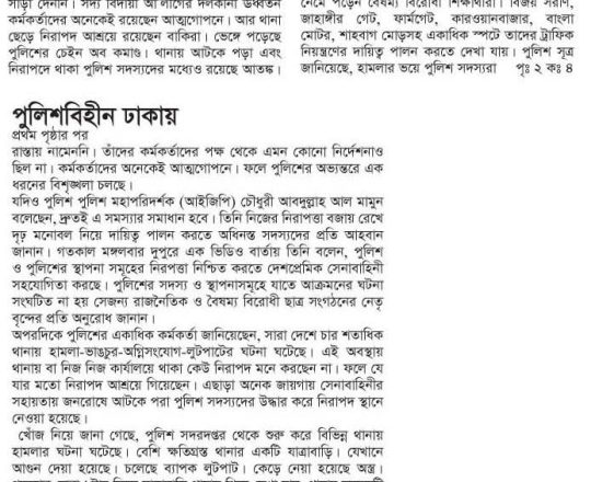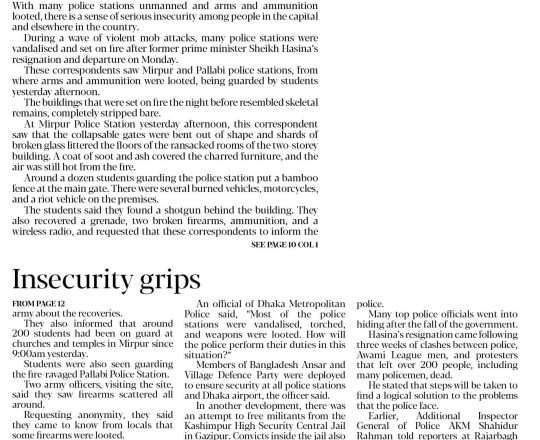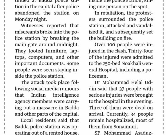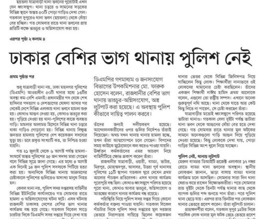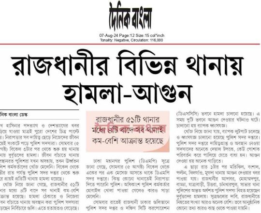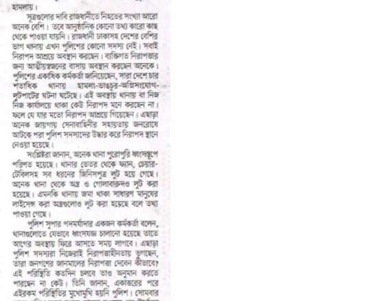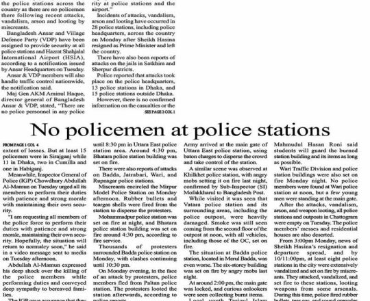 Bangladesh Post, 7 August 2024, No police at police stations