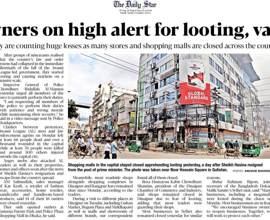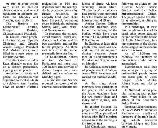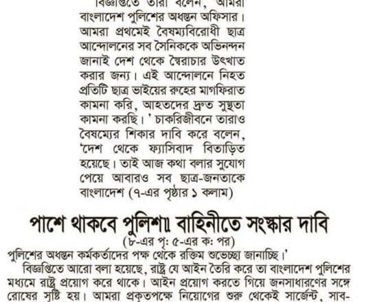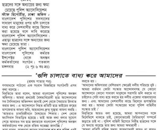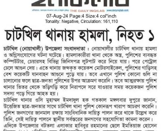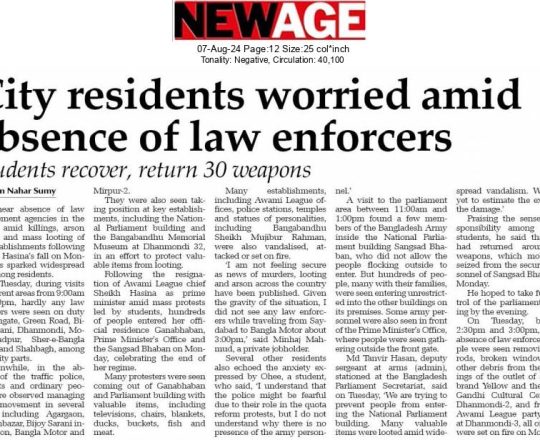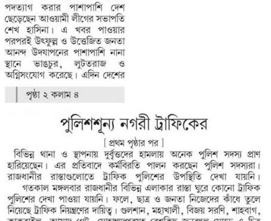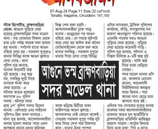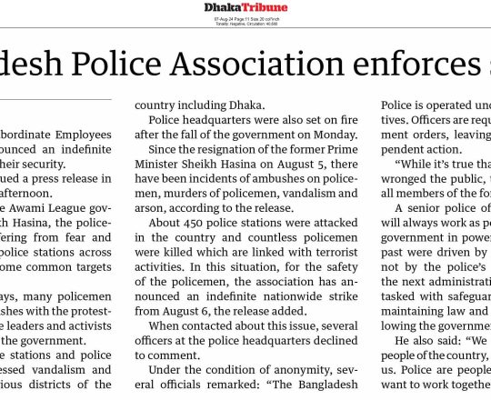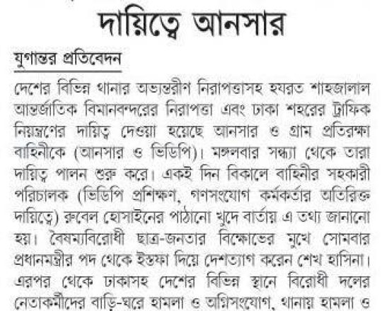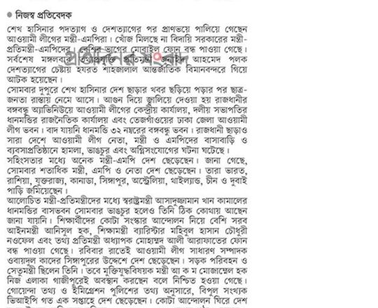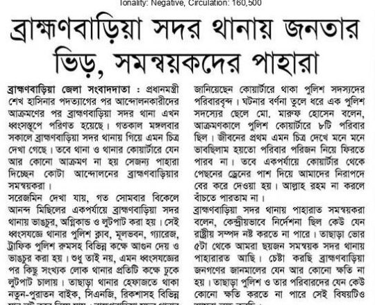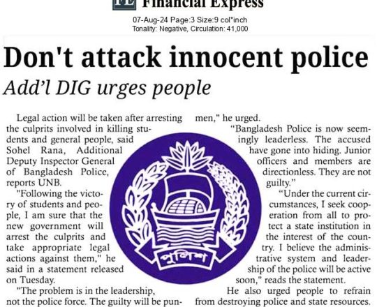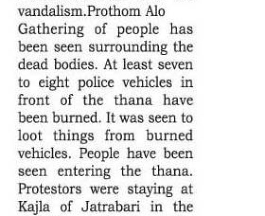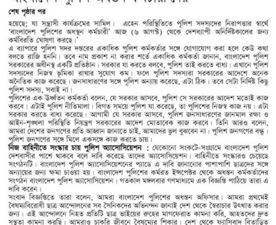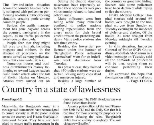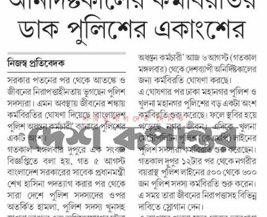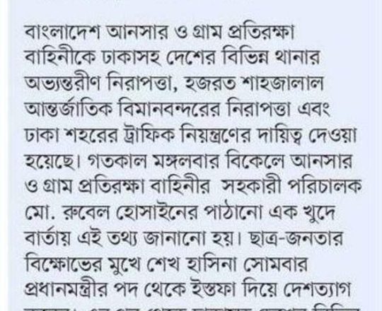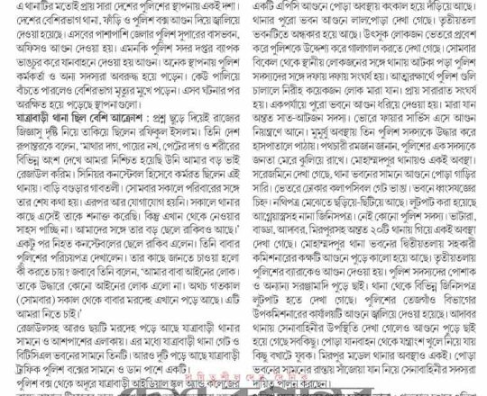 Bangladesh Post, 7 August 2024, No police at police stations