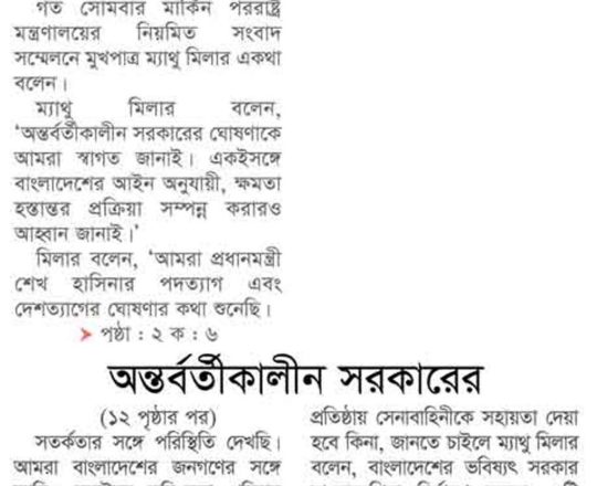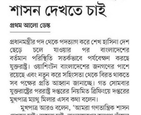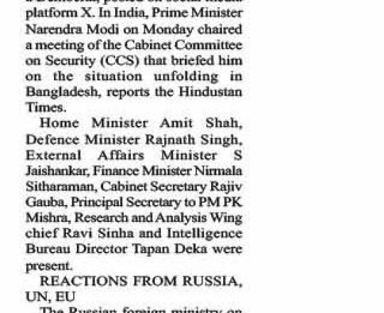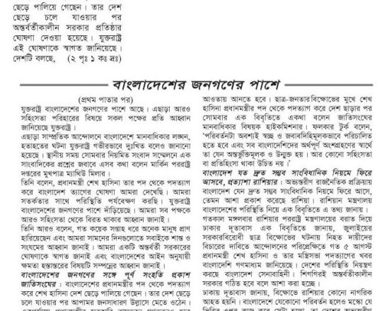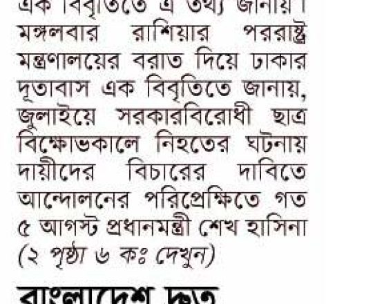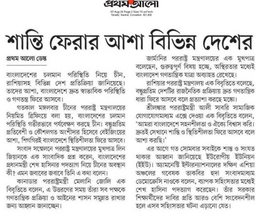 বাংলাদেশ প্রতিদিন, ৭ আগস্ট ২০২৪, আইনের শাসন সমুন্নত রাখার আহ্বান রাশিয়া-কানাডার