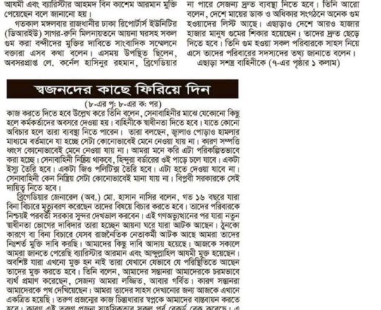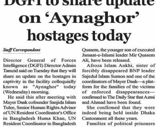 Bangladesh Post, 7 August 2024, DGFI to share update on 'Aynaghor' hostages today