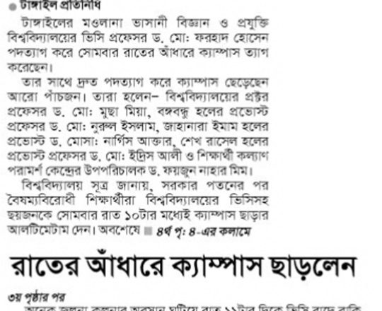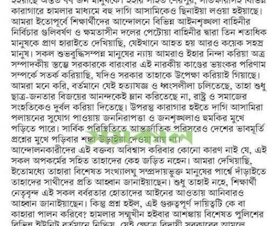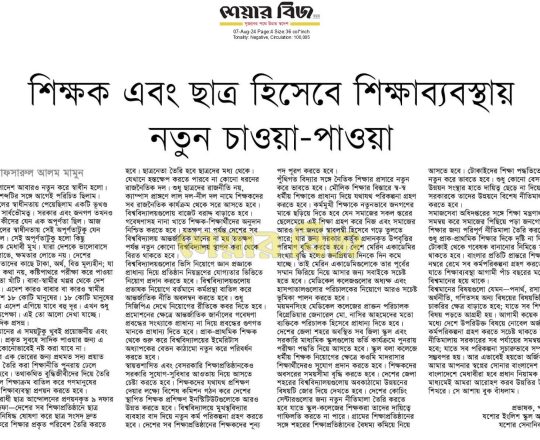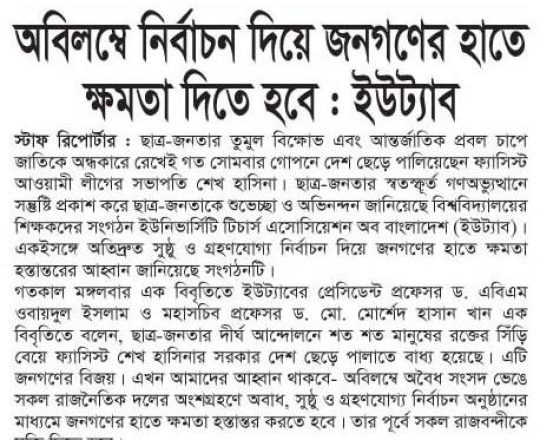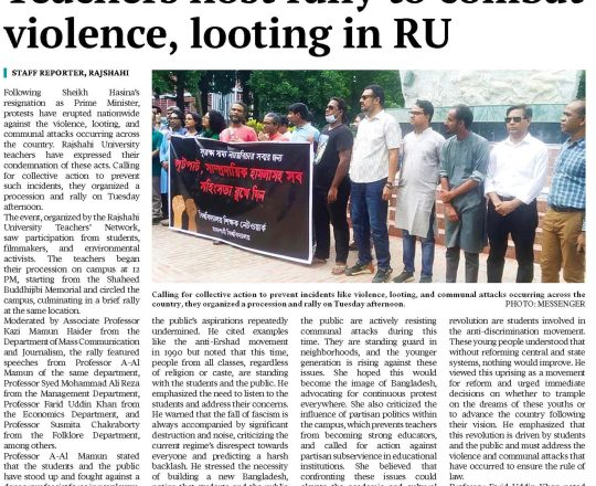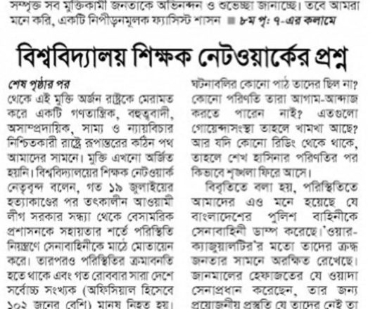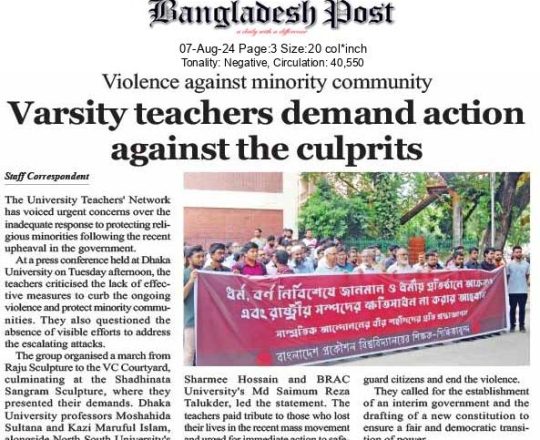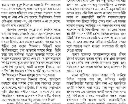 Bangladesh Post, 7 August 2024, Varsity teachers demand action against the culprits
