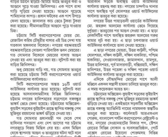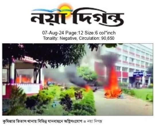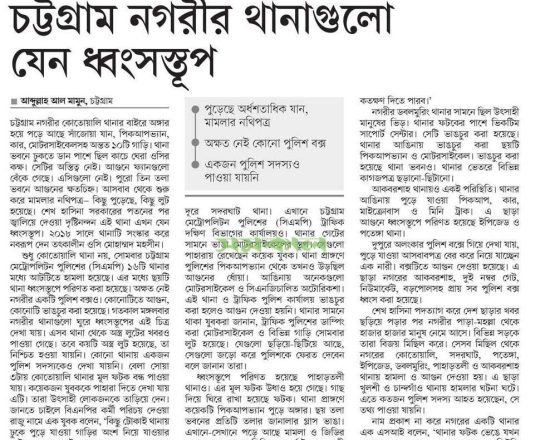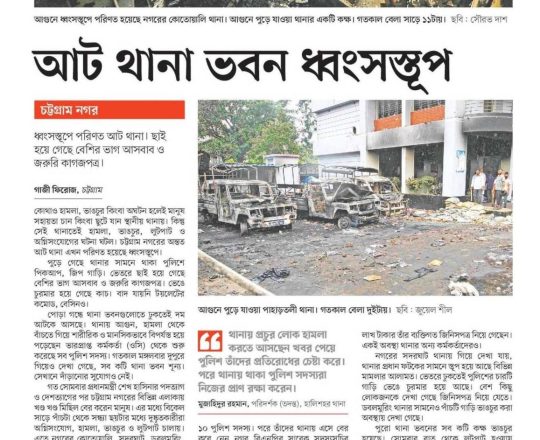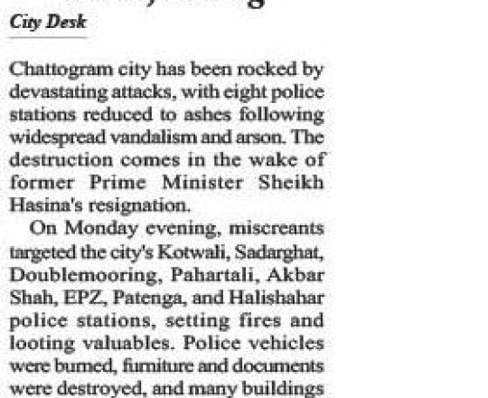 Bangladesh Post, 7 August 2024, 8 police stations in Ctg ravaged by arson, looting