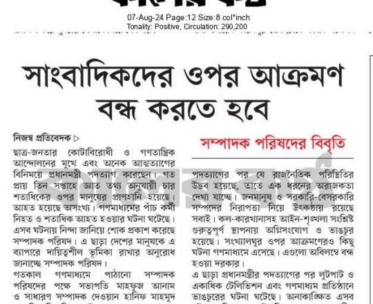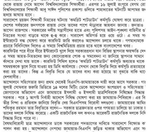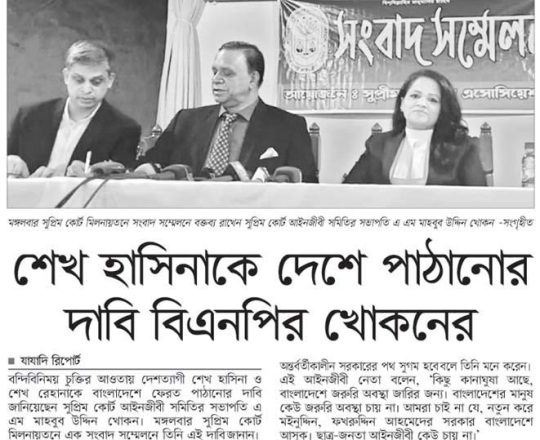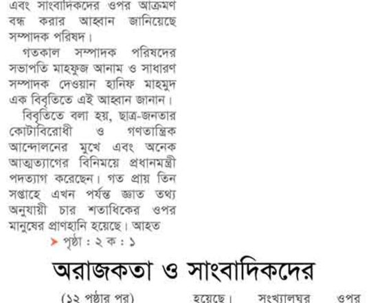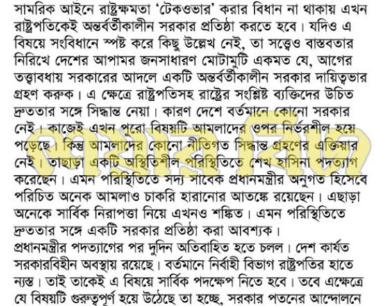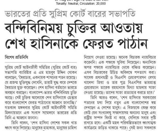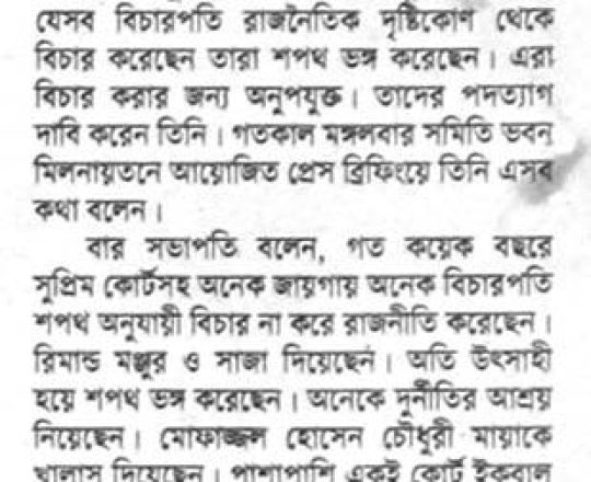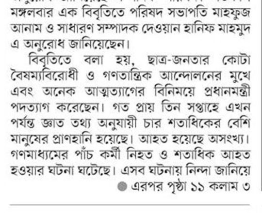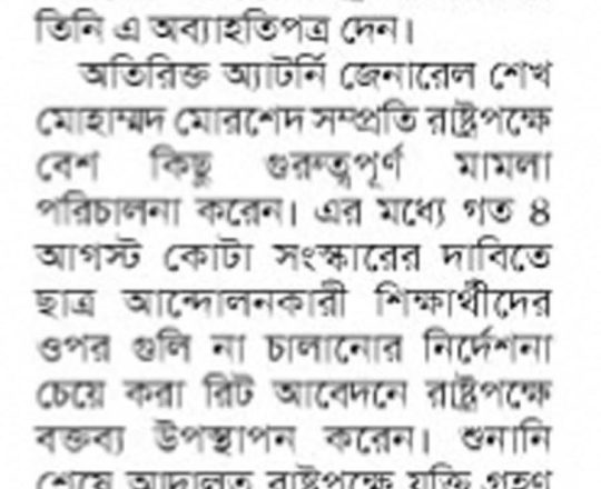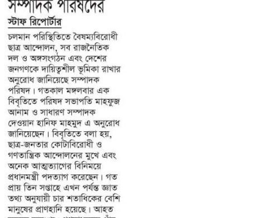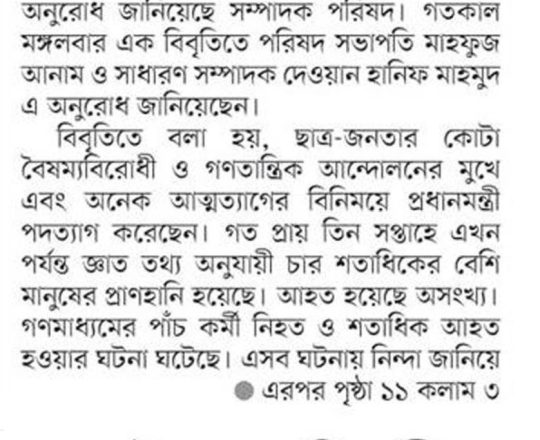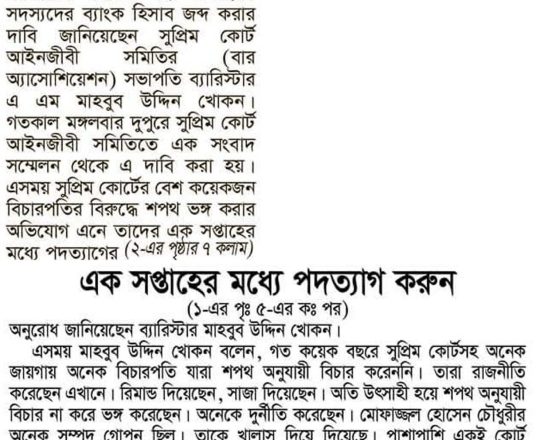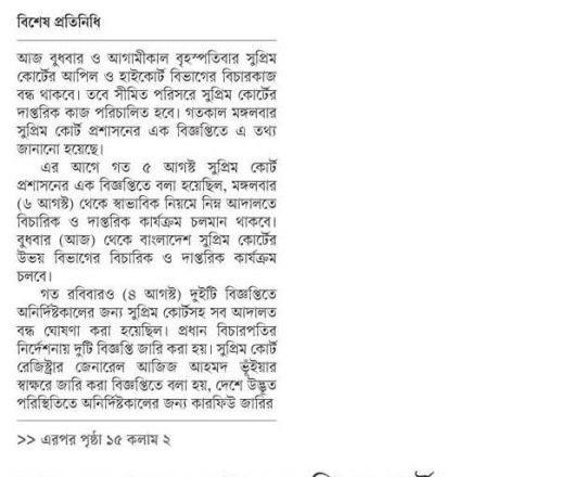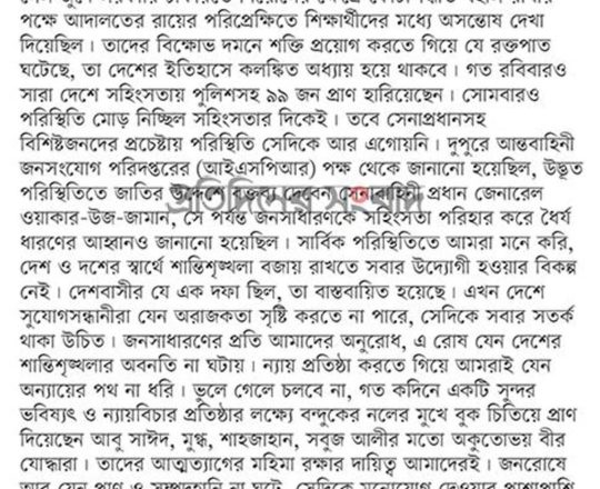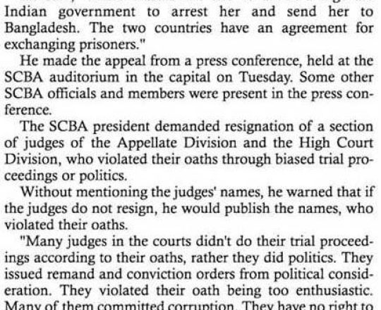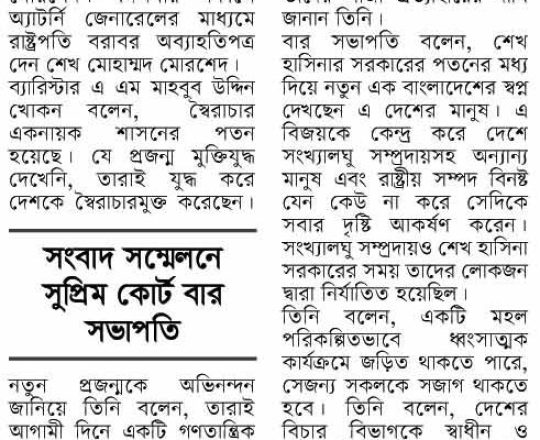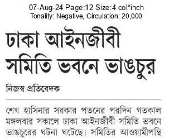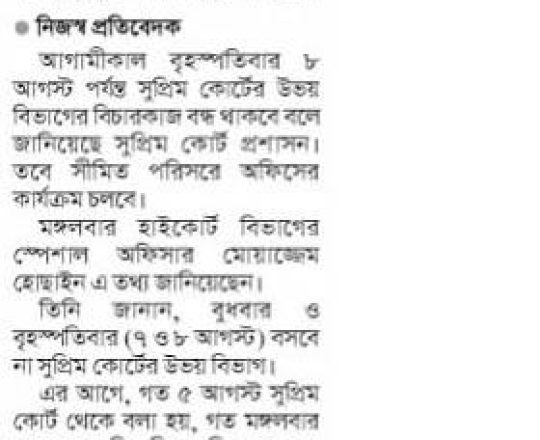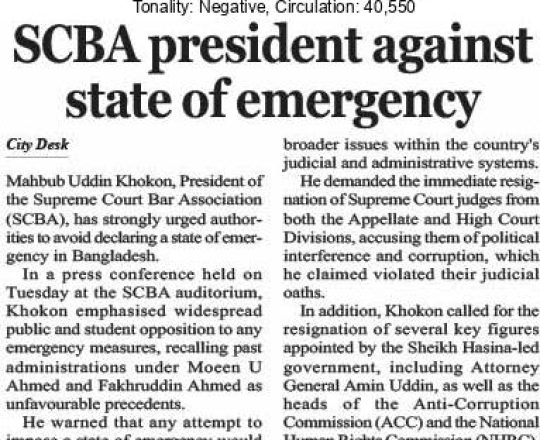 Bangladesh Post, 7 August 2024, SCBA president against state of emergency