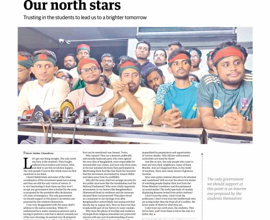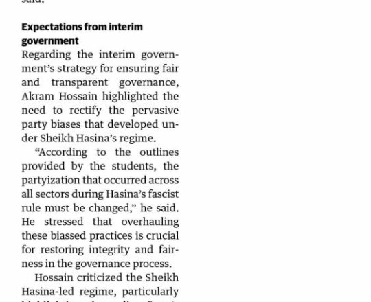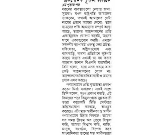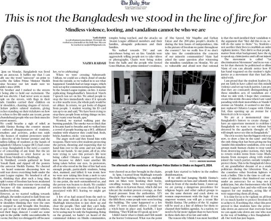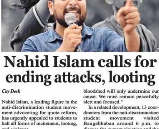 Bangladesh Post, 7 August 2024, Nahid Islam calls for ending attacks, looting
