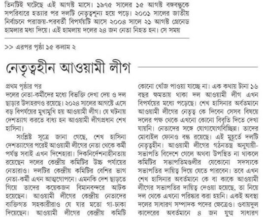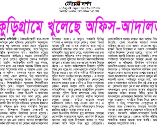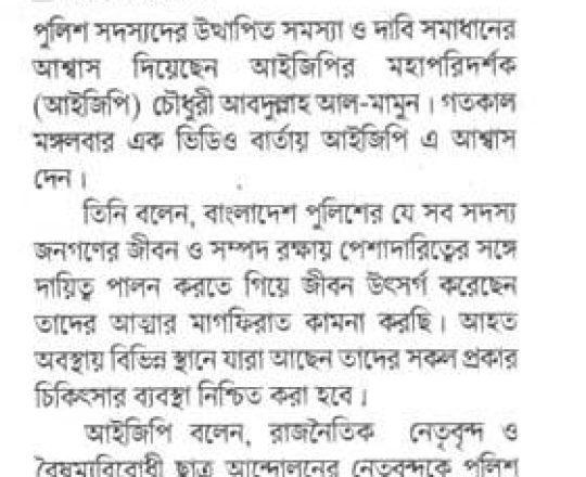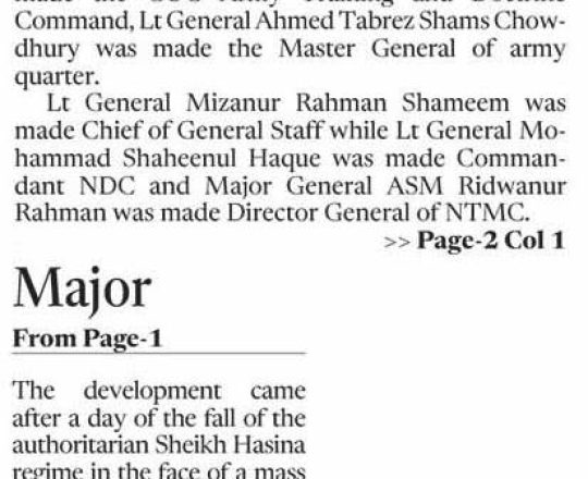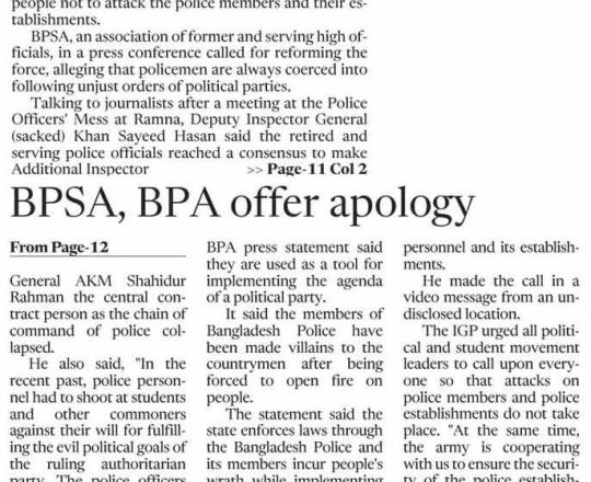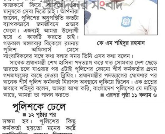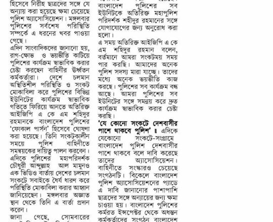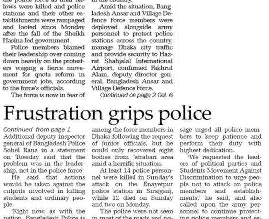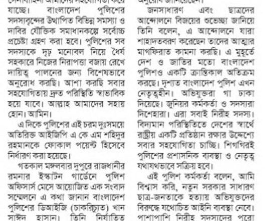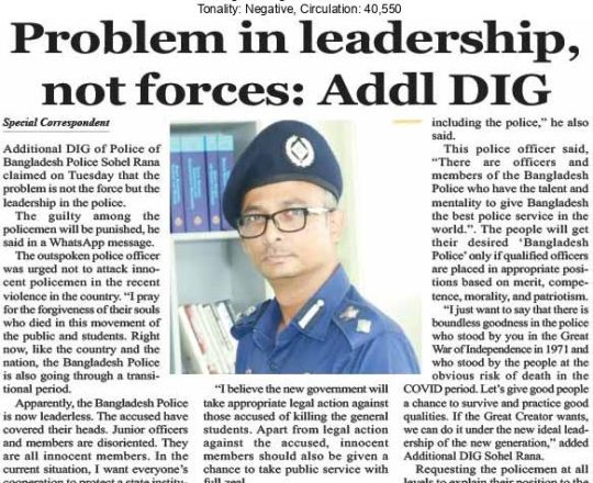 Bangladesh Post, 7 August 2024, Problem in leadership, not forces: Addl DIG