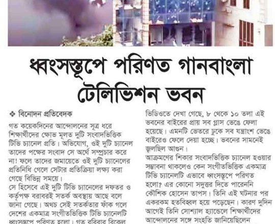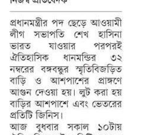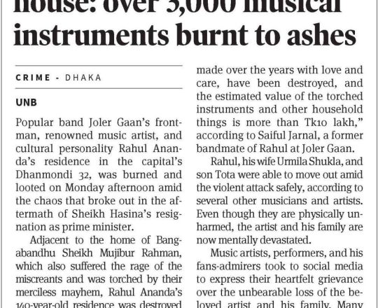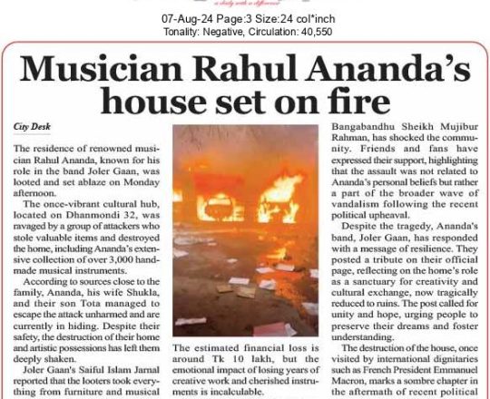 Bangladesh Post, 7 August 2024, Musician Rahul Ananda's house set on fire