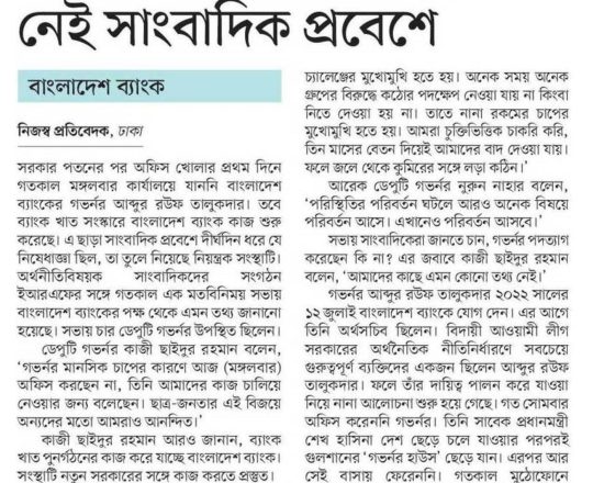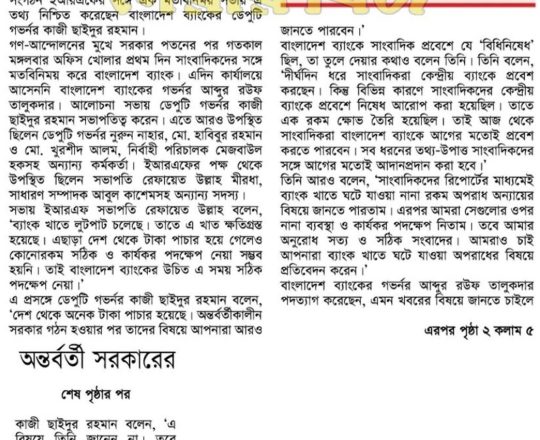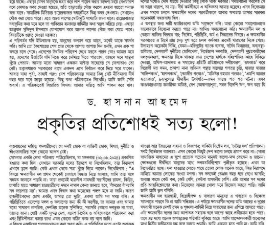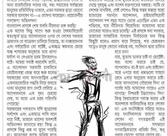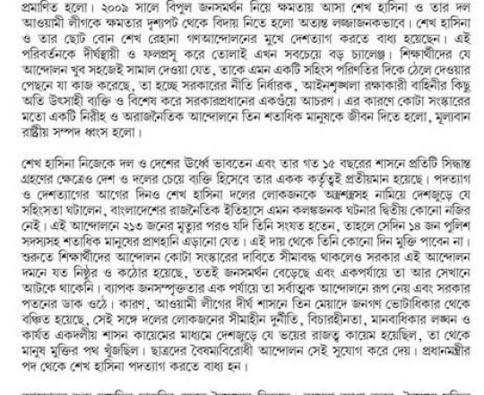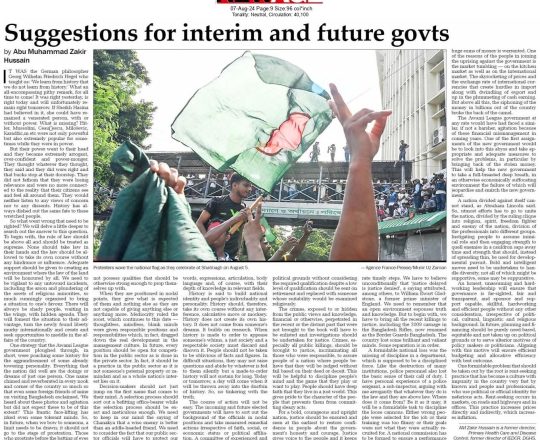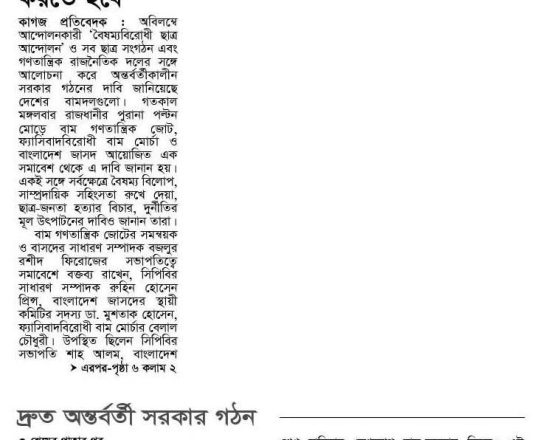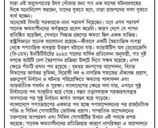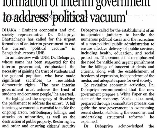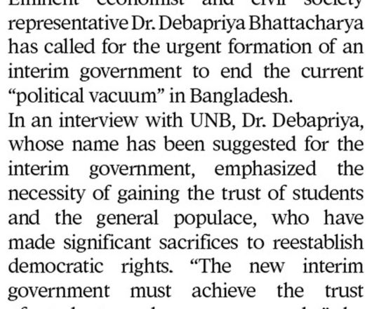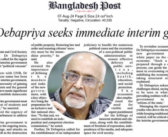 Bangladesh Post, 7 August 2024, Dr Debapriya seeks immediate interim govt