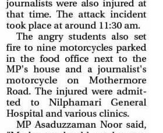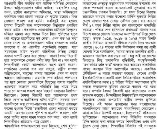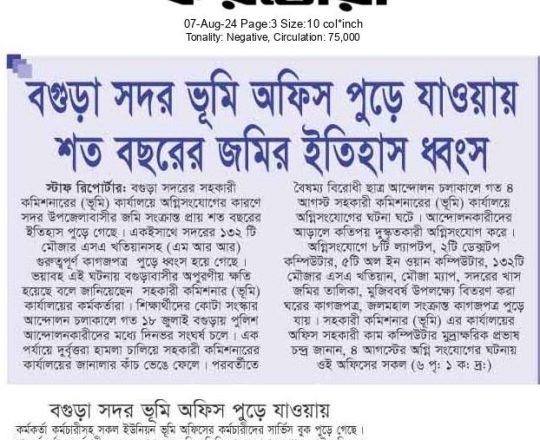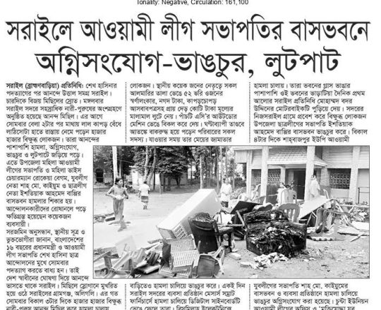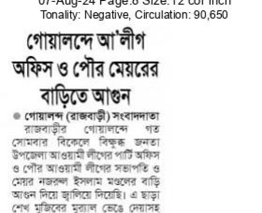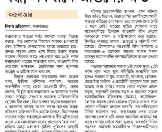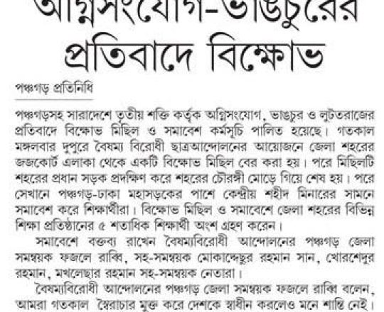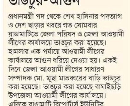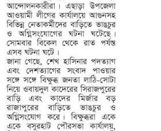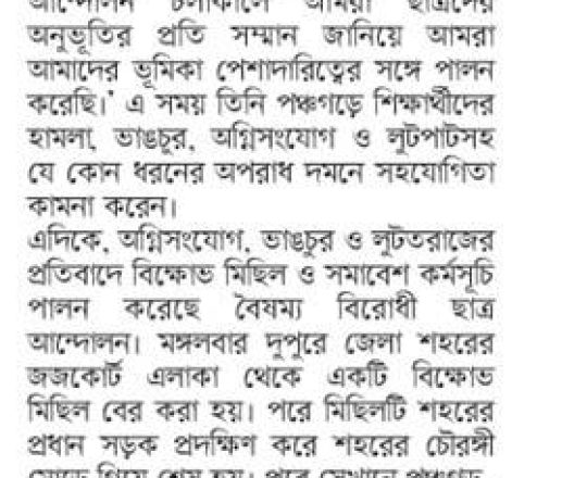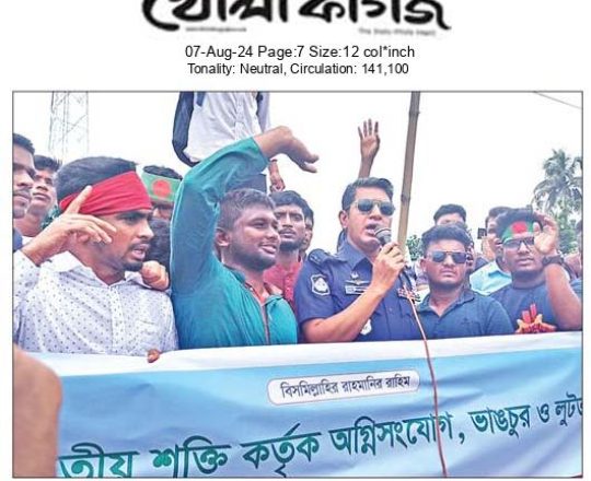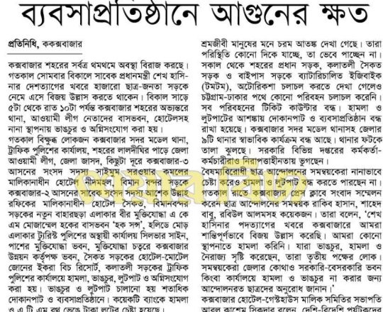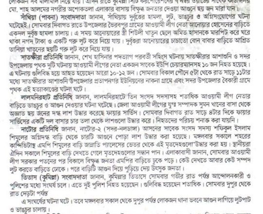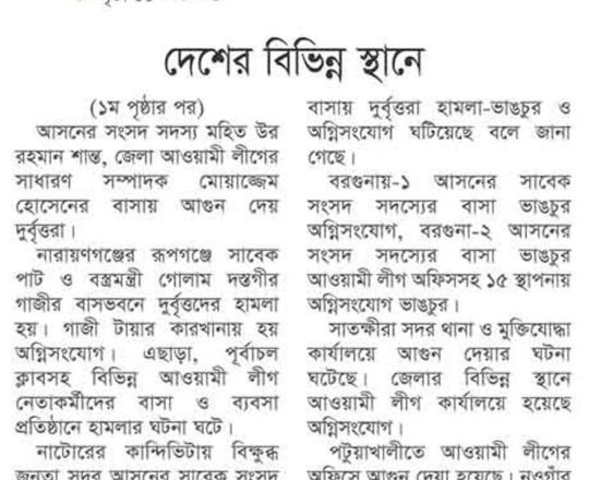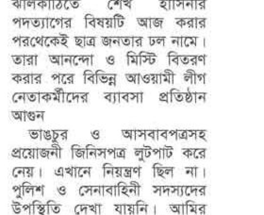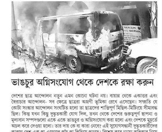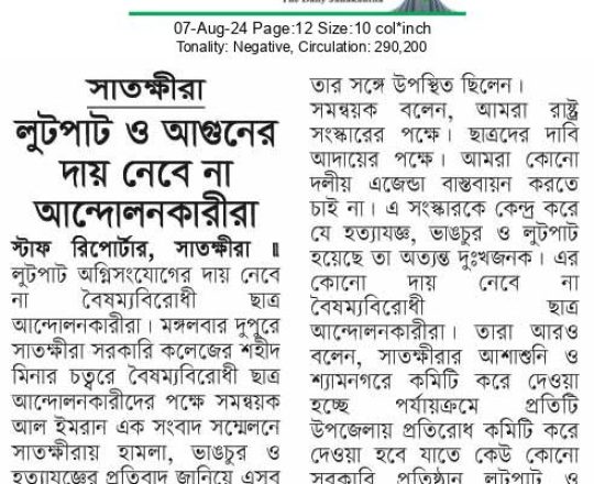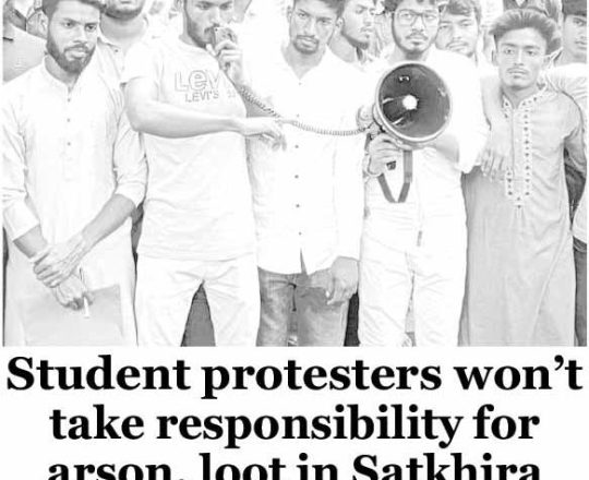 Bangladesh Post, 7 August 2024, Student protesters won't take responsibility for arson, loot in Satkhira