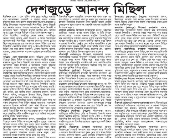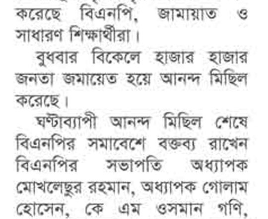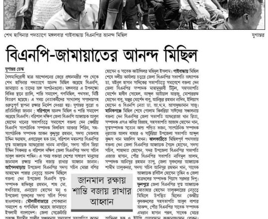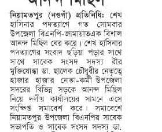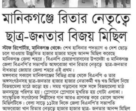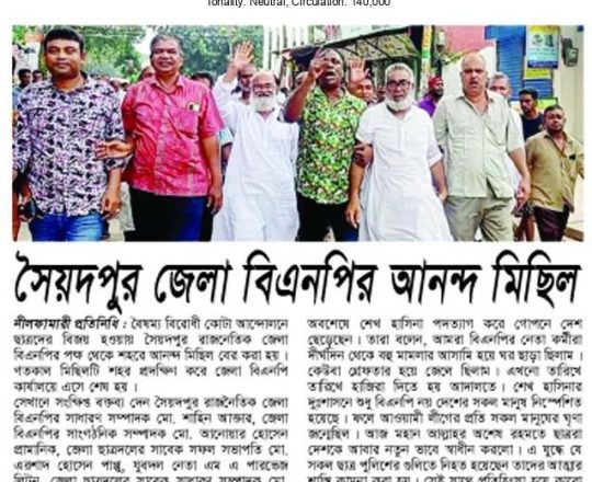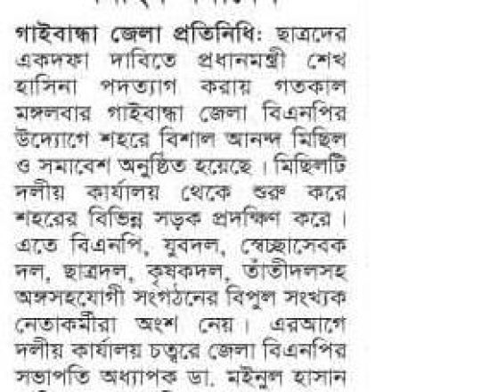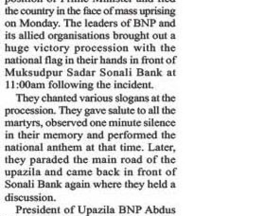 Bangladesh Post, 7 August 2024, BNP holds victory procession in Gopalganj