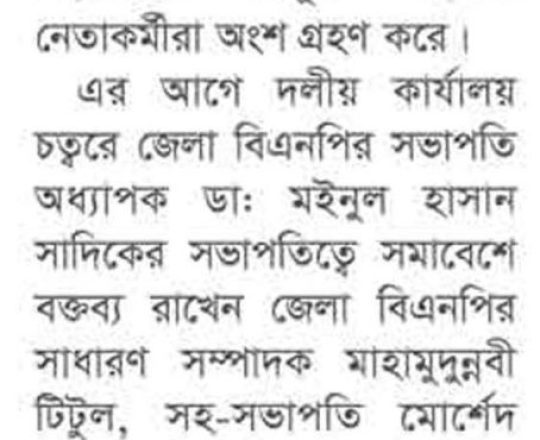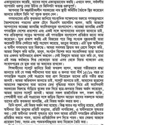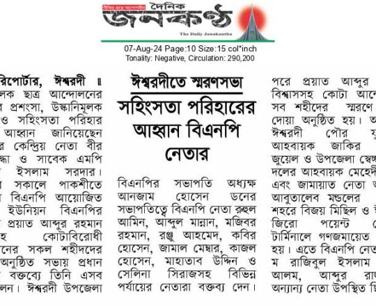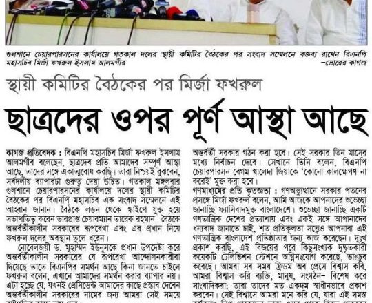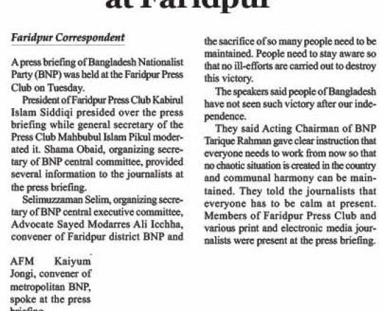 Bangladesh Post, 7 August 2024, BNP holds press briefing at Faridpur