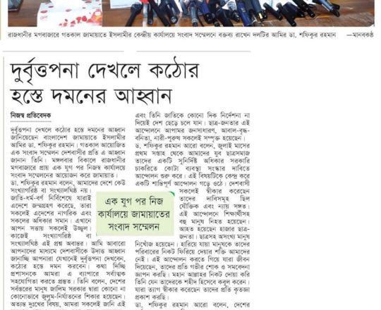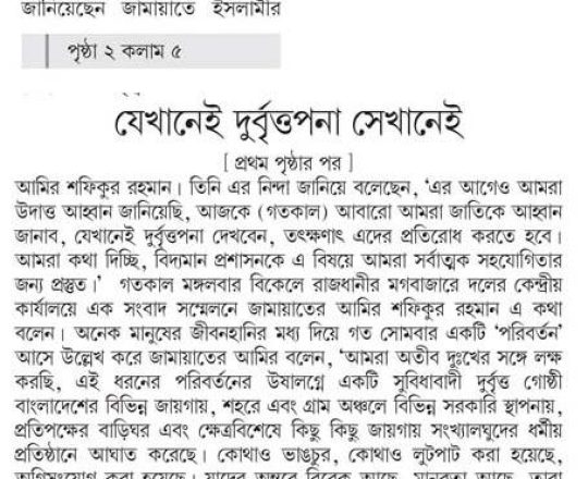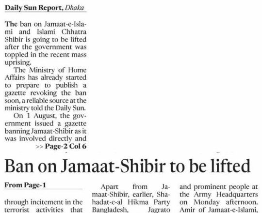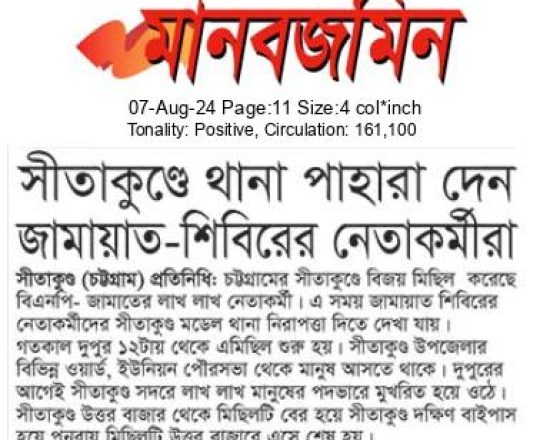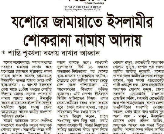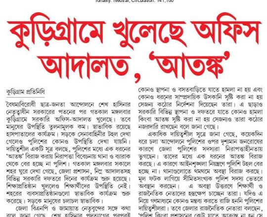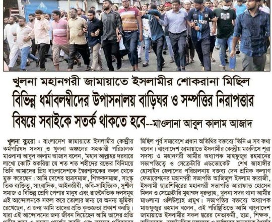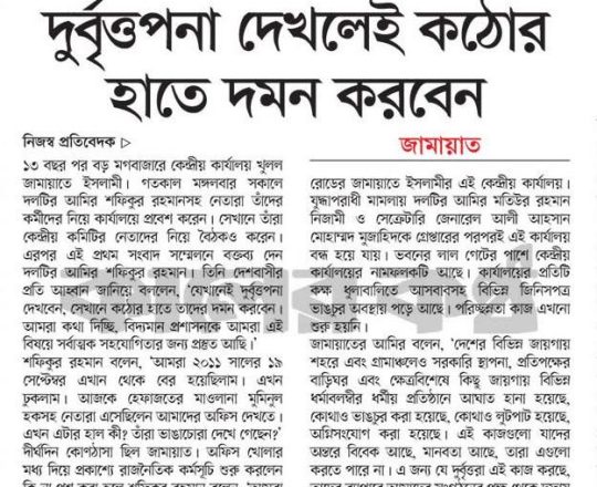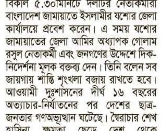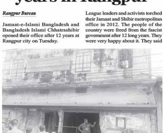 Bangladesh Post, 7 August 2024, Jamaat-Shibir open their office after 12 years in Rangpur