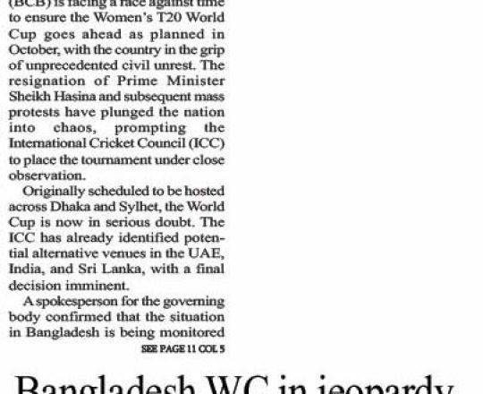 Bangladesh Post, 7 August 2024, Bangladesh WC in jeopardy amidst unrest