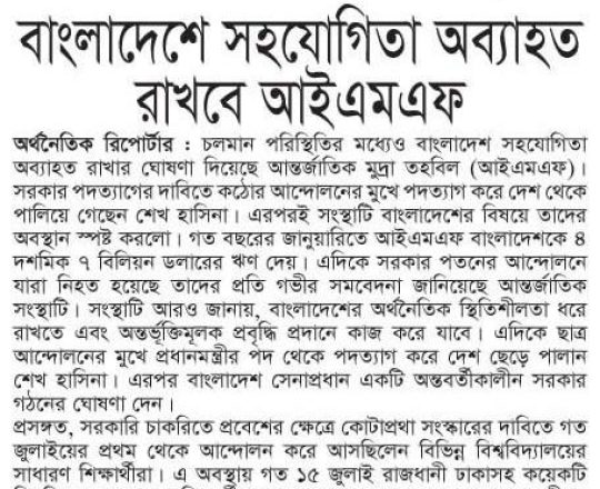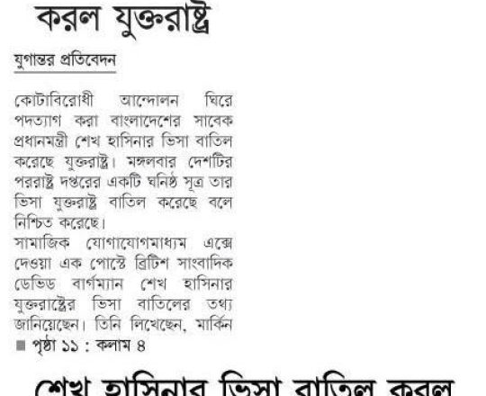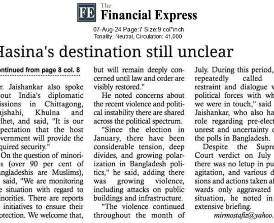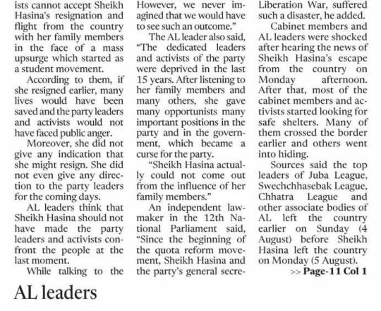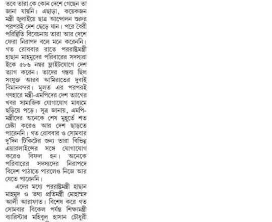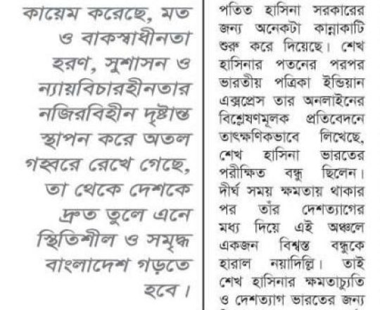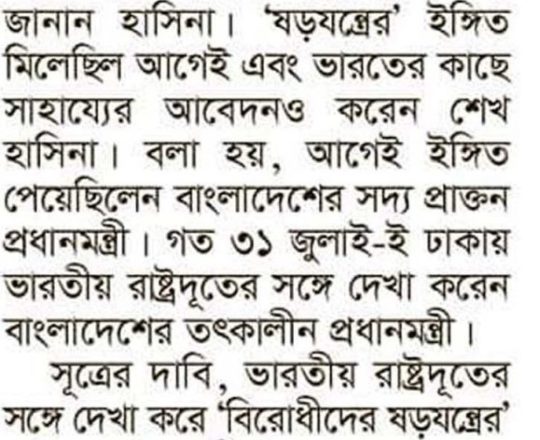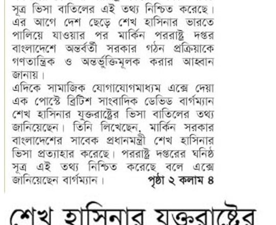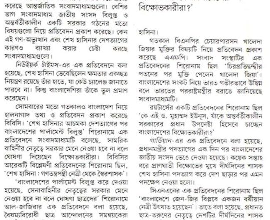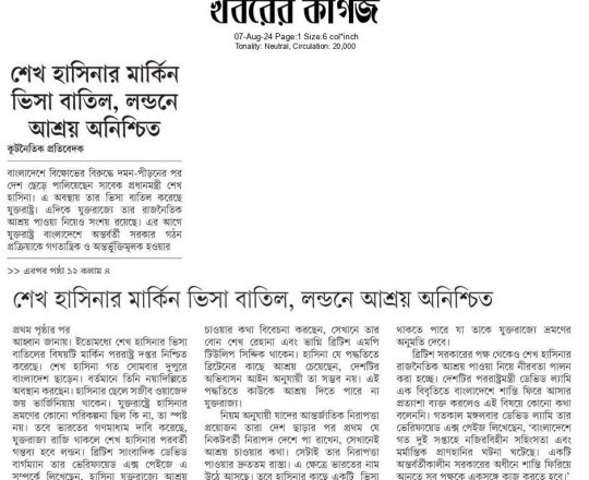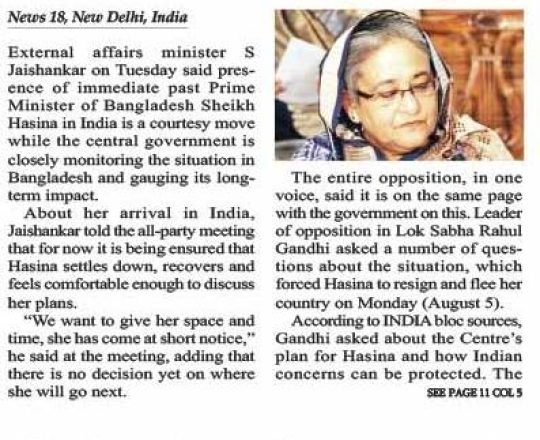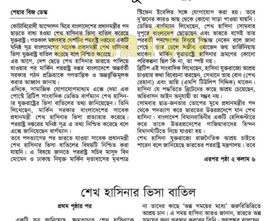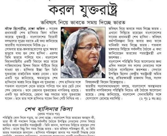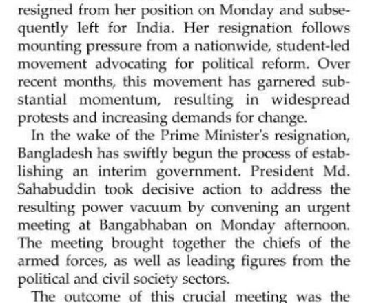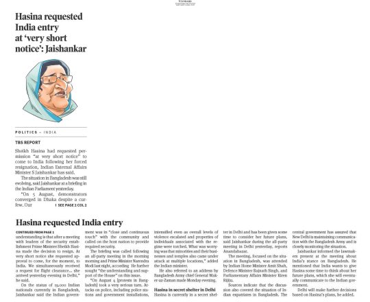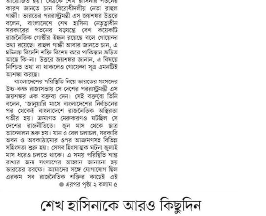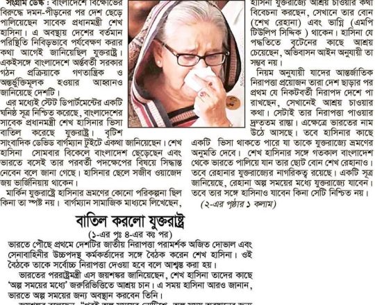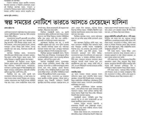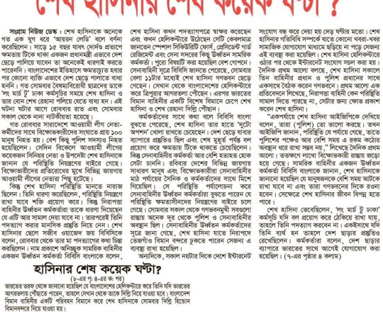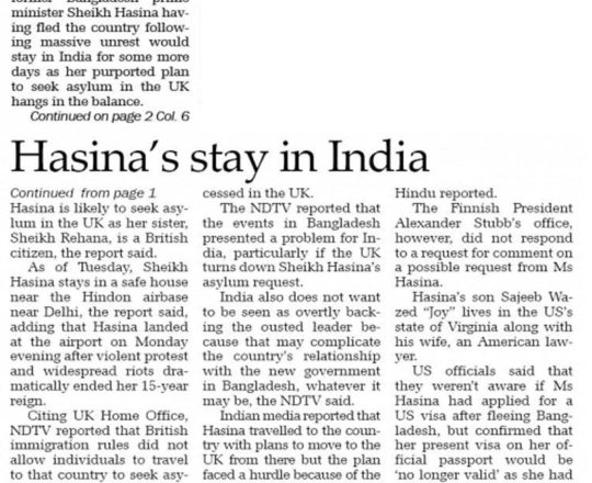 Bangladesh Post, 7 August 2024, Hasina given time, space to decide