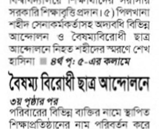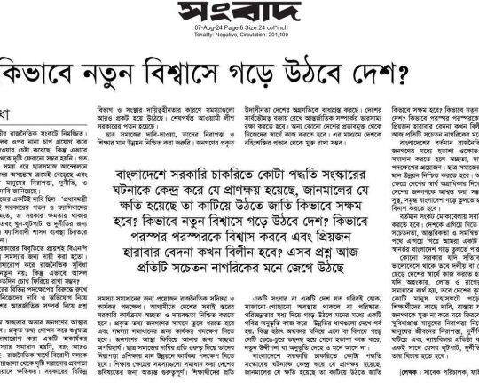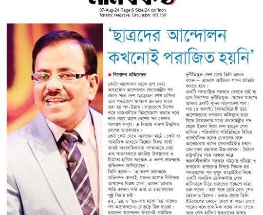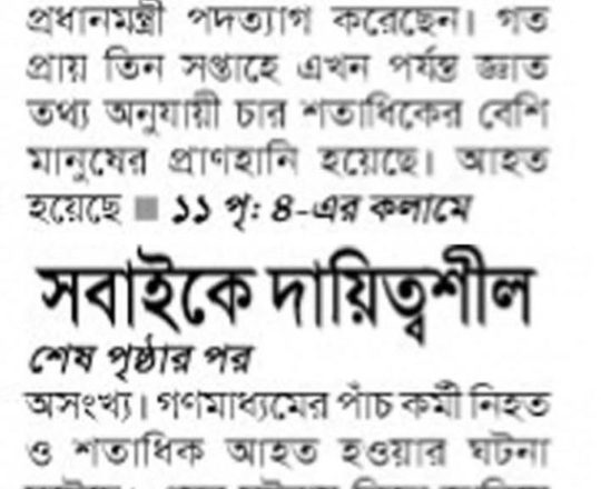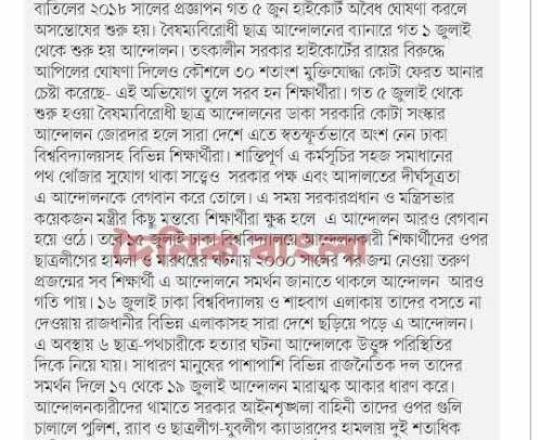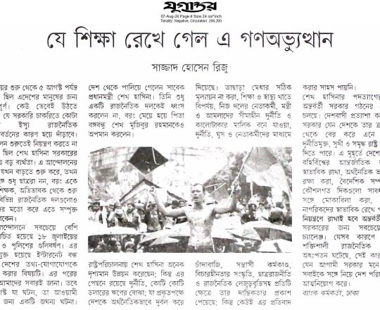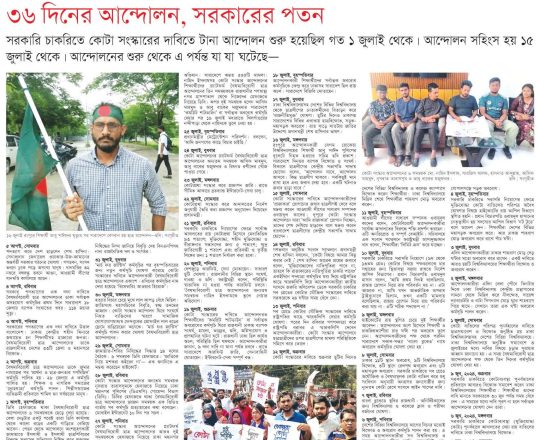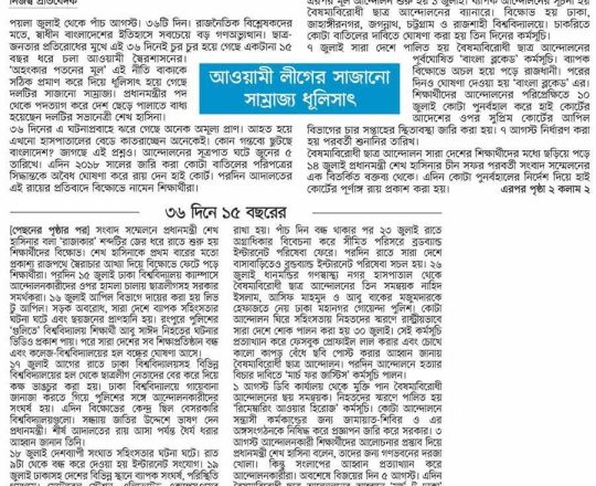 বাংলাদেশ প্রতিদিন, ৭ আগস্ট ২০২৪, ৩৬ দিনে ১৫ বছরের দন্ড চূর্ণ