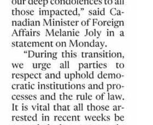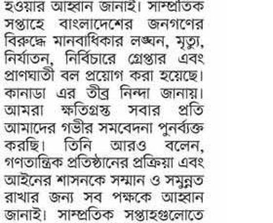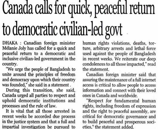 Bangladesh Today, 7 August 2024, Canada calls for quick, peaceful return to democratic civilian-led govt