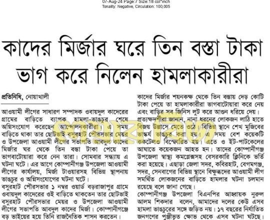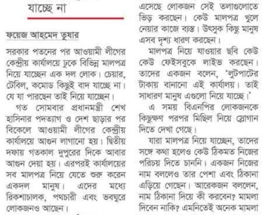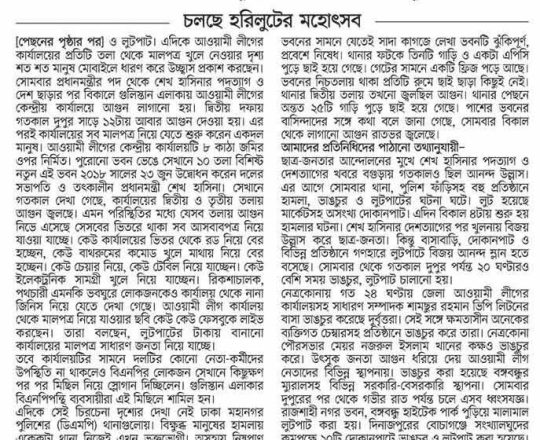 বাংলাদেশ প্রতিদিন, ৭ আগস্ট ২০২৪, চলছে হরিলুটের মহোৎসব