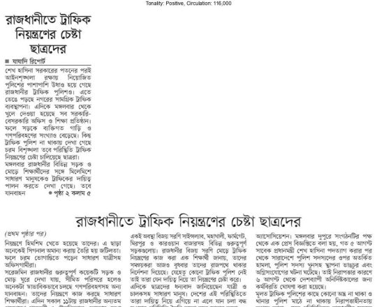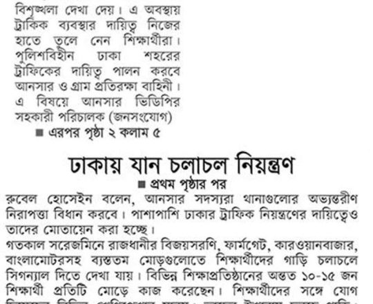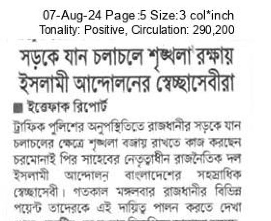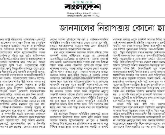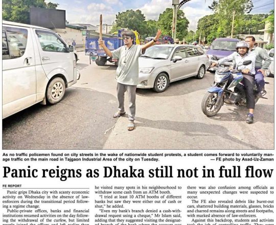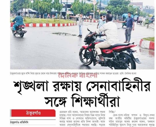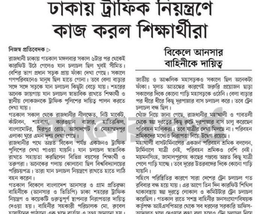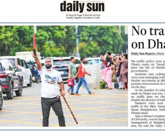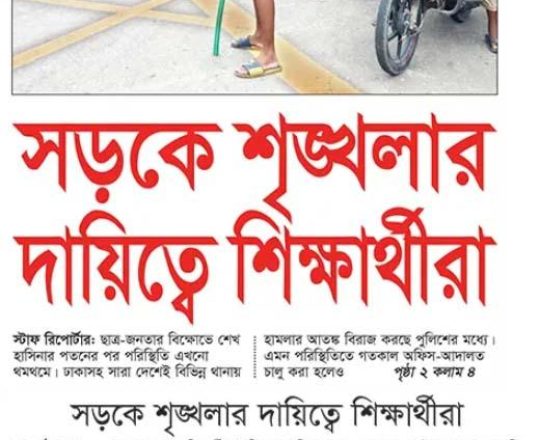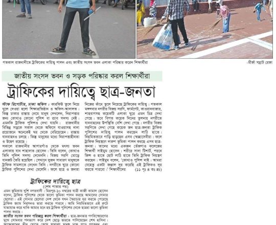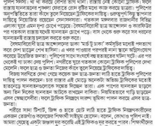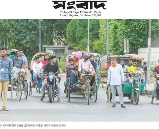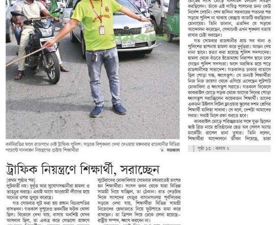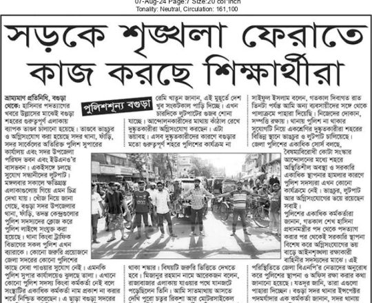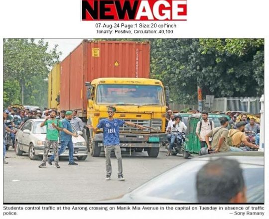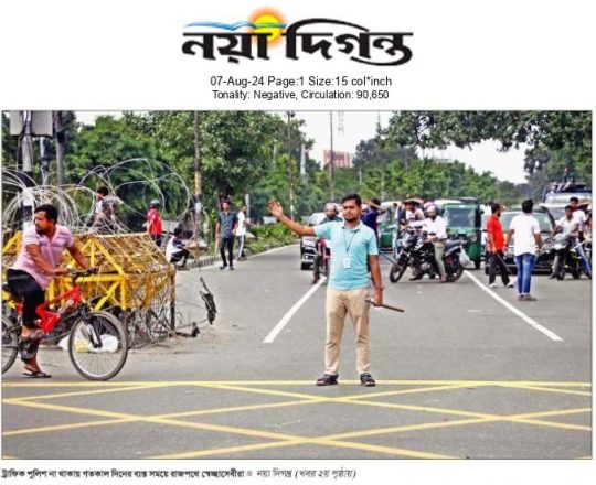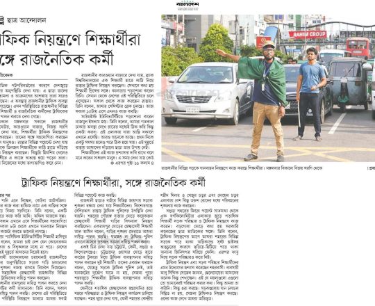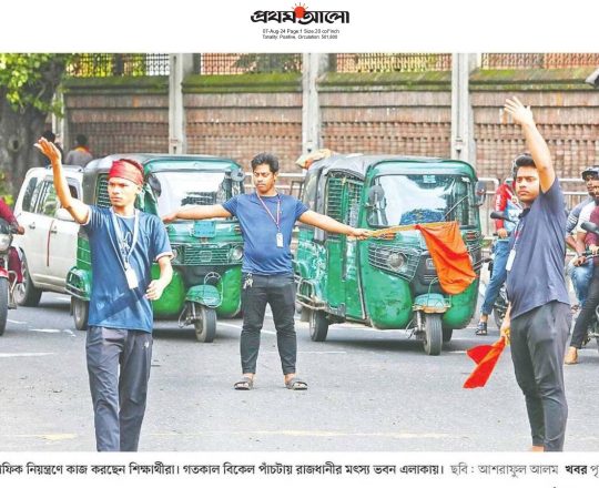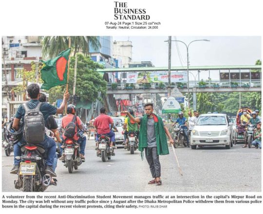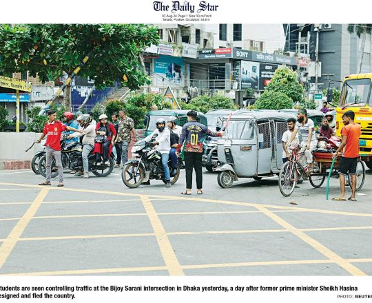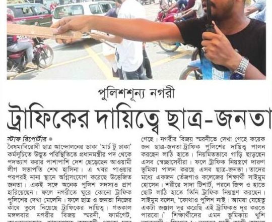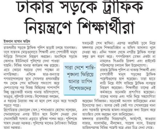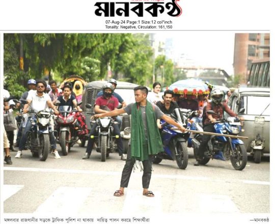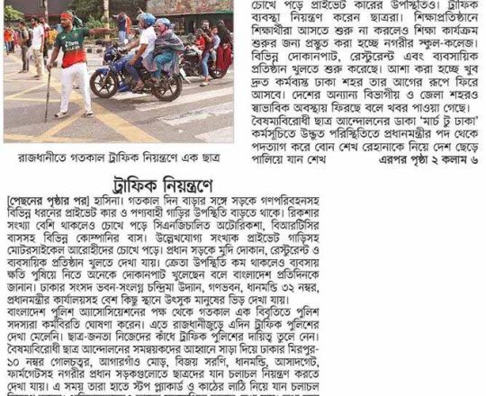 বাংলাদেশ প্রতিদিন, ৭ আগস্ট ২০২৪, ট্রাফিক নিয়ন্ত্রণে শিক্ষার্থীরা
