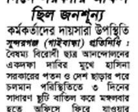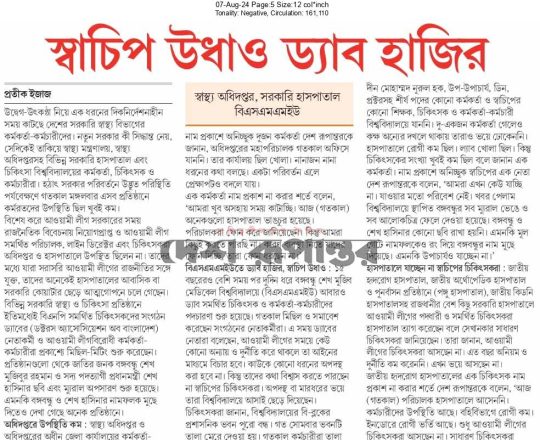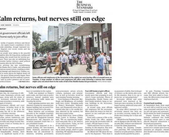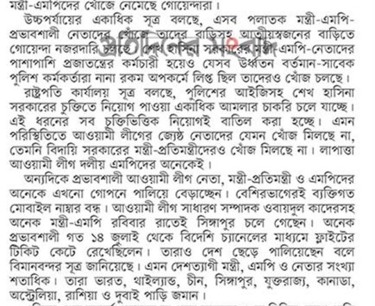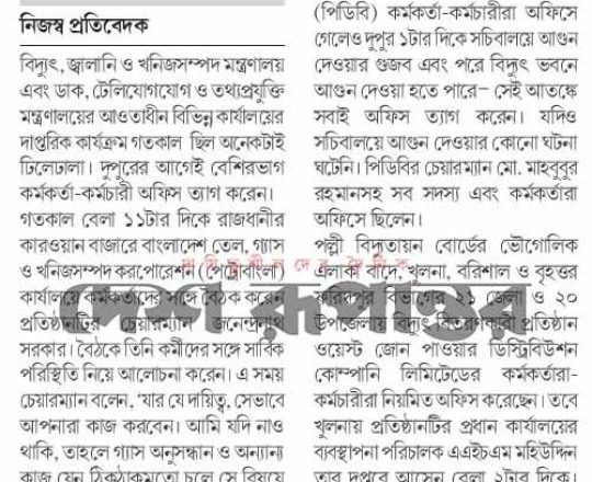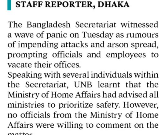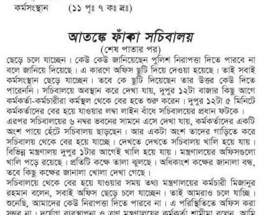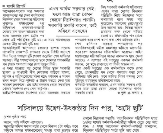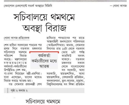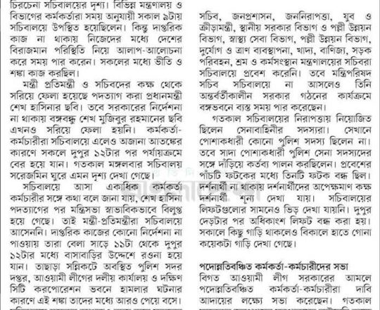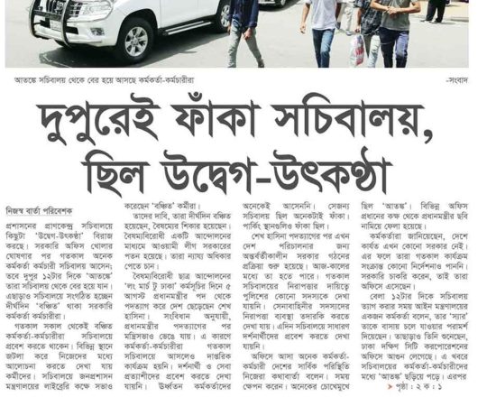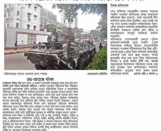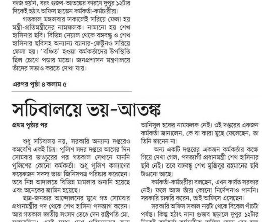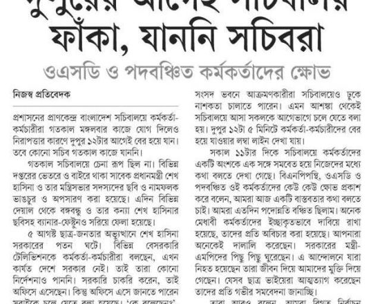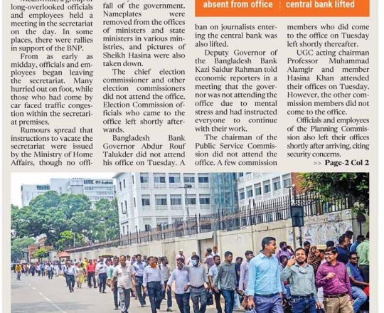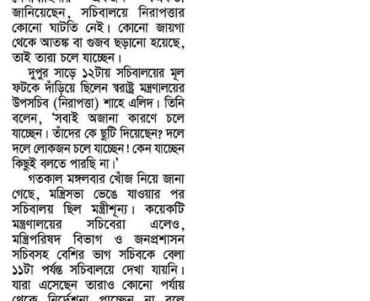 বাংলাদেশ প্রতিদিন, ৭ আগস্ট ২০২৪, ভয়-আতঙ্কে ফাঁকা সচিবালয়