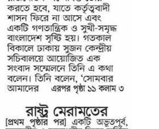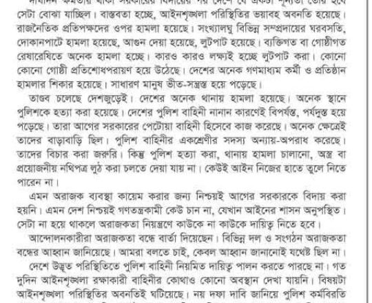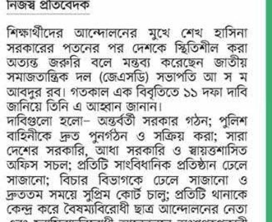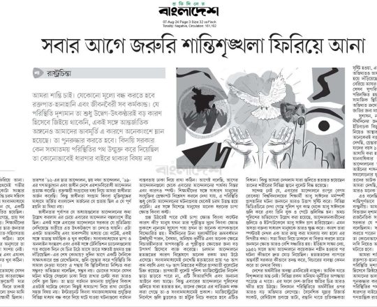 বাংলাদেশ প্রতিদিন, ৭ আগস্ট ২০২৪, দেশকে স্থিতিশীল করা জরুরি: রব