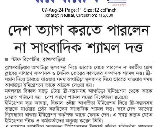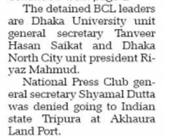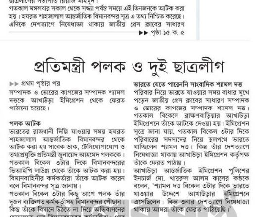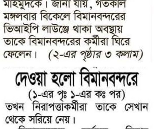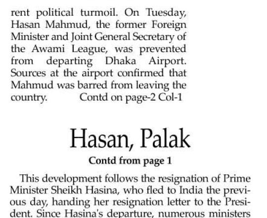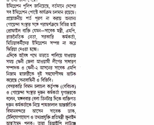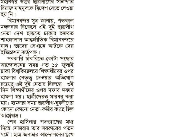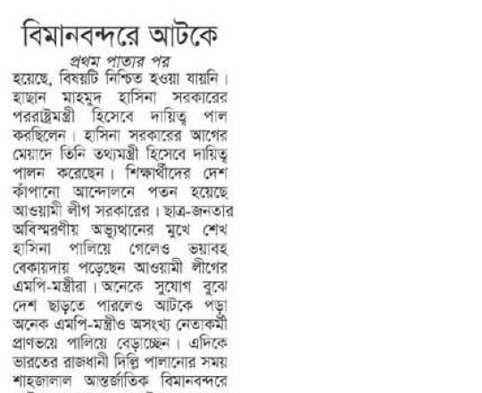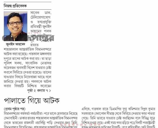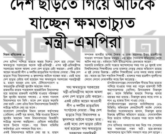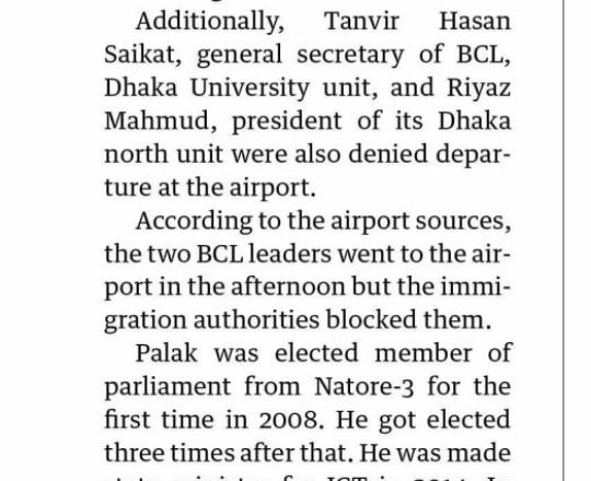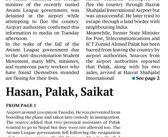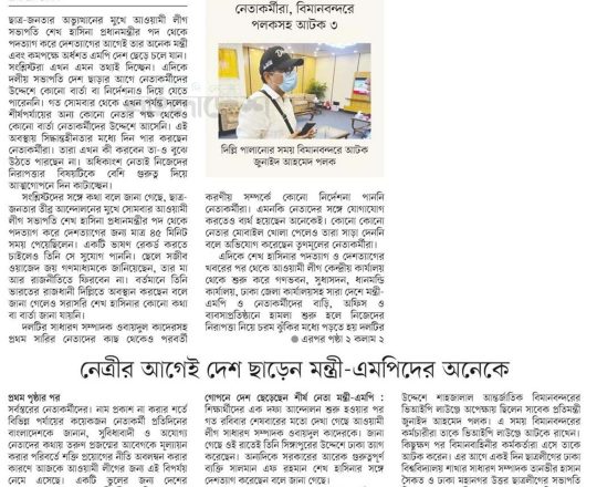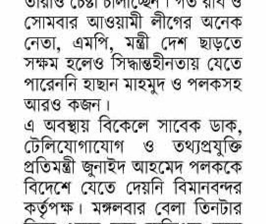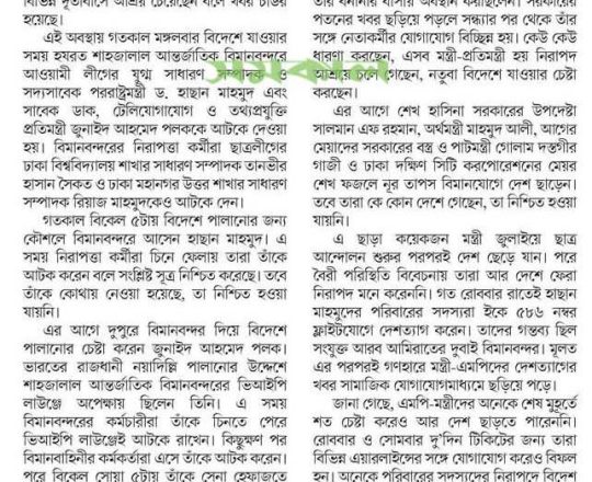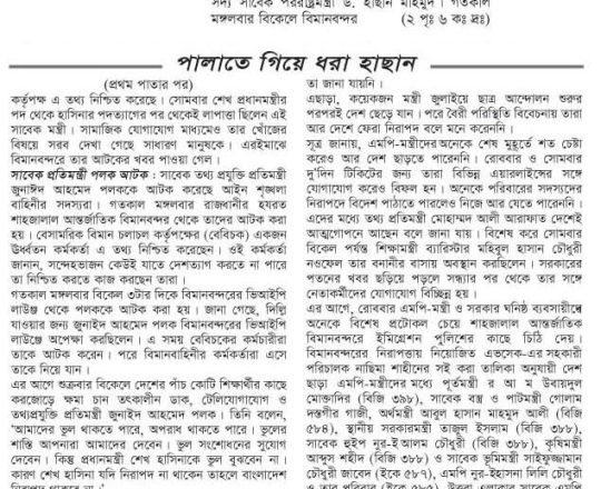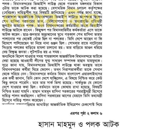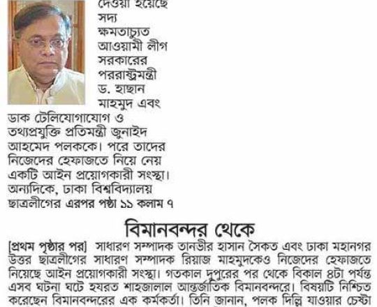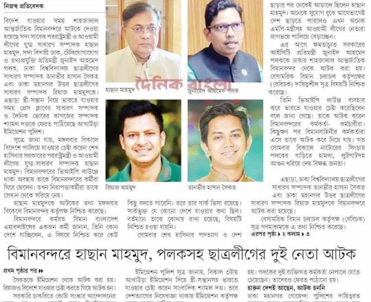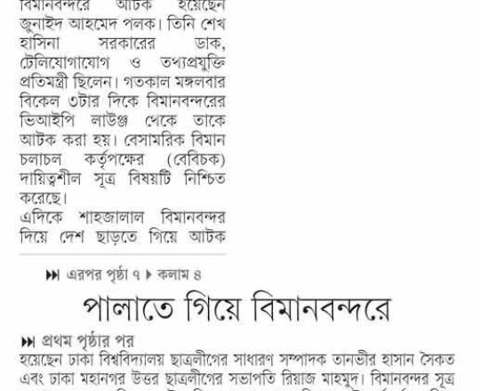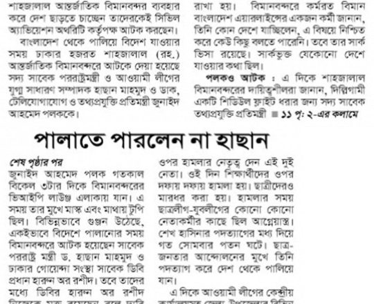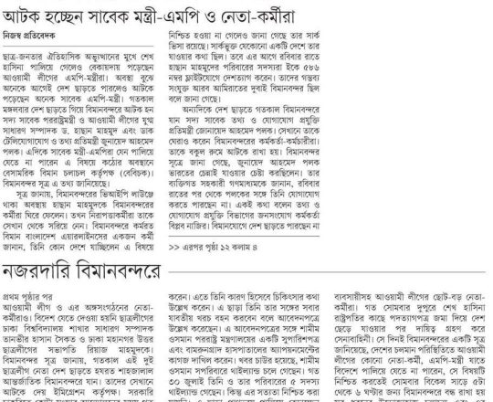 বাংলাদেশ প্রতিদিন, ৭ আগস্ট ২০২৪, বিমানবন্দর থেকে হাছানসহ ফেরত অনেককে