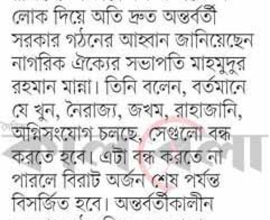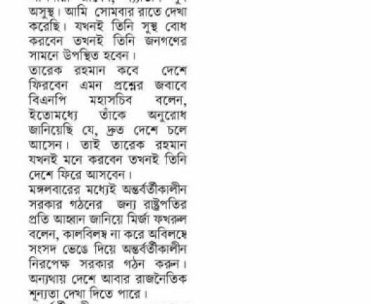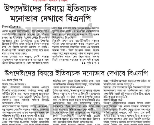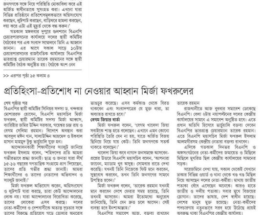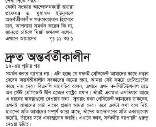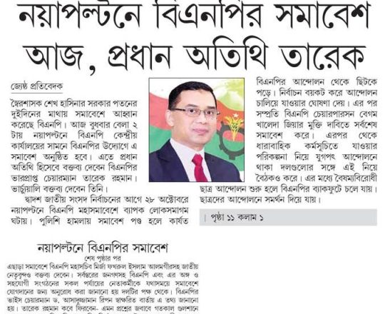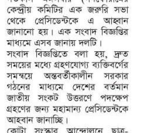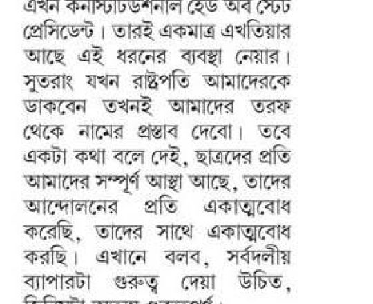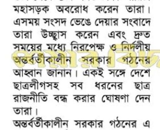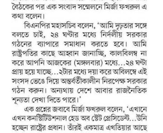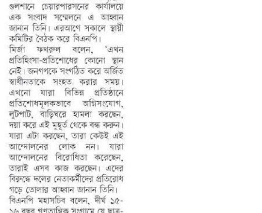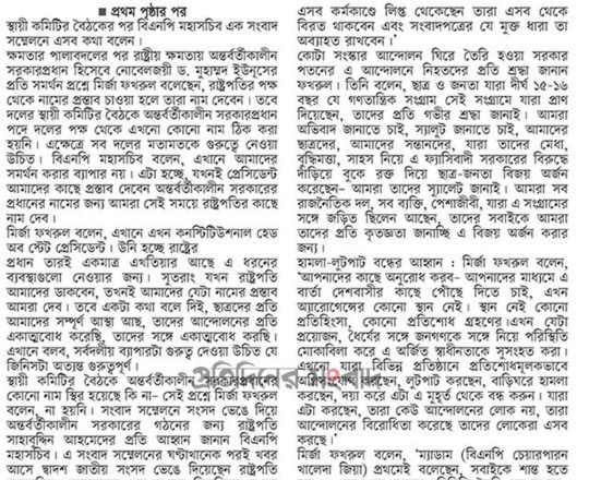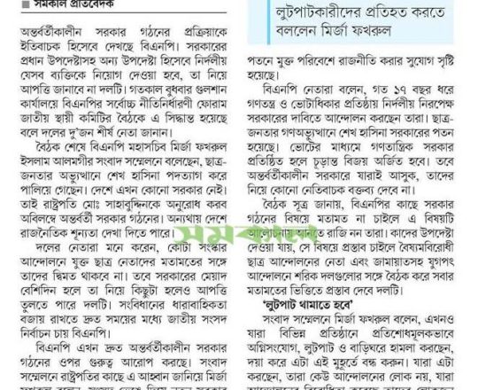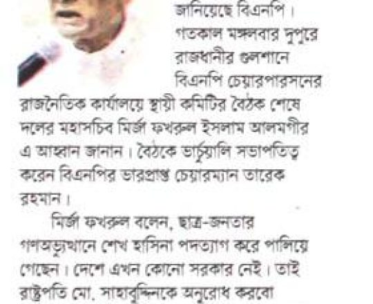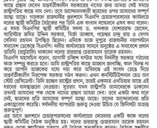 বাংলাদেশ প্রতিদিন, ৭ আগস্ট ২০২৪, বিএনপি ২৪ ঘণ্টার মধ্যে অন্তর্বর্তী সরকার চায় নয়াপল্টনে সমাবেশ আজ