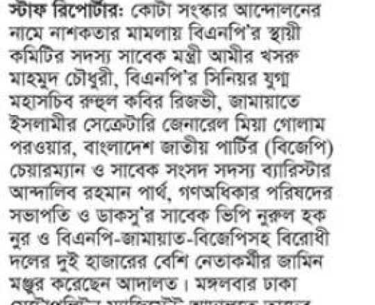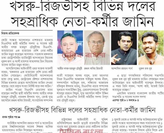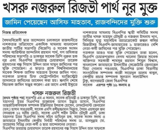 বাংলাদেশ প্রতিদিন, ৭ আগস্ট ২০২৪, খসরু নজরুল রিজভী পার্থ নূর মুক্ত