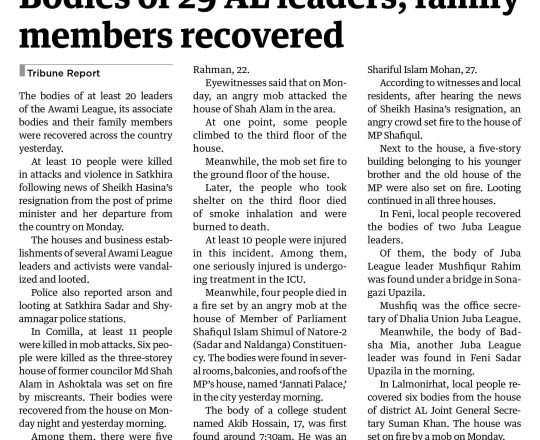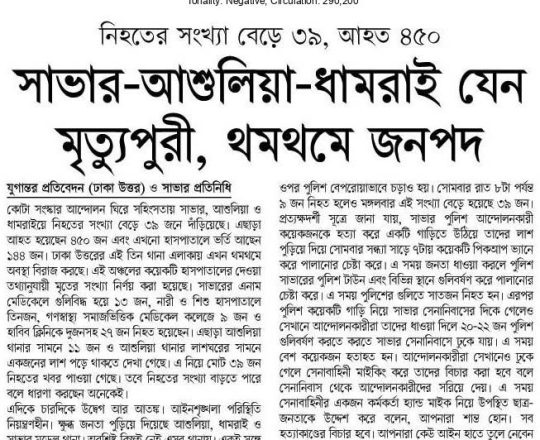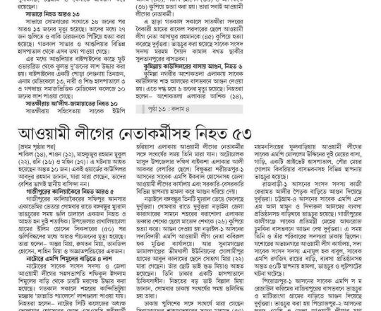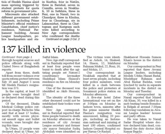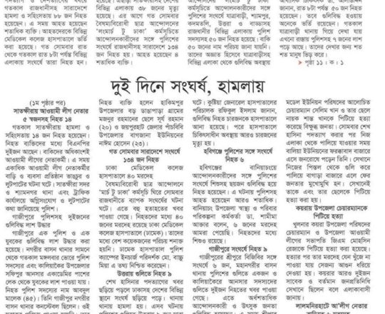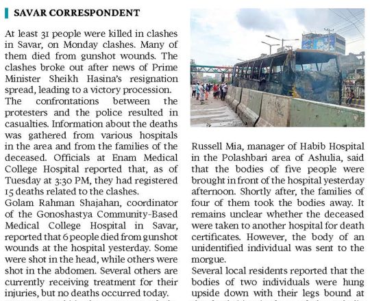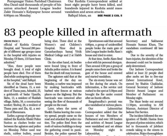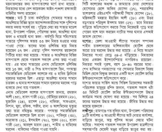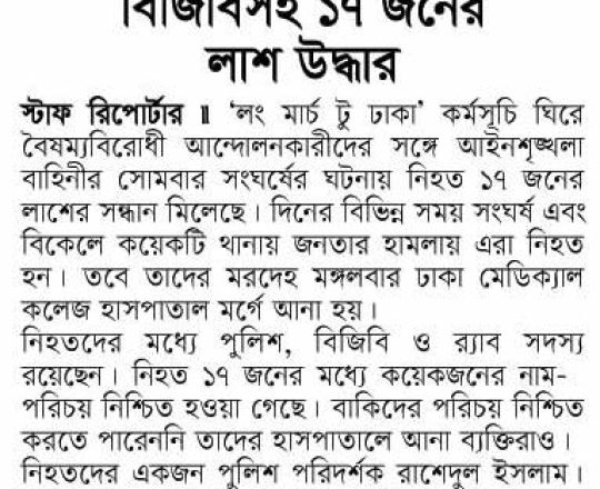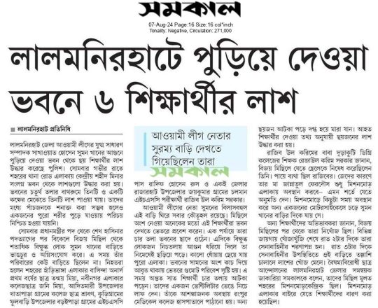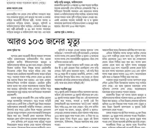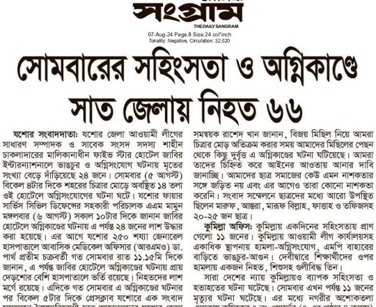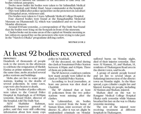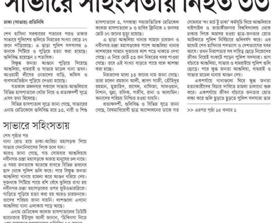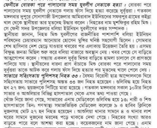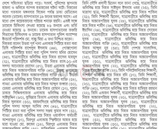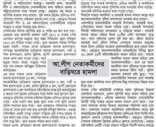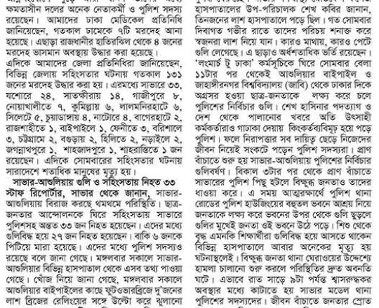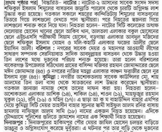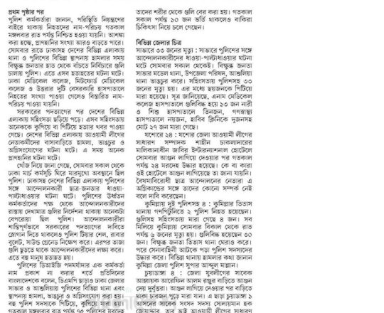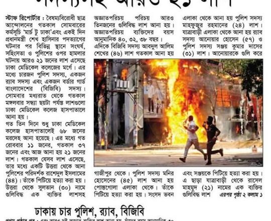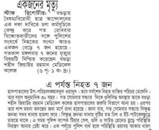 বাংলাদেশ প্রতিদিন, ৭ আগস্ট ২০২৪, লাশ গুনে শেষ করা যাচ্ছে না