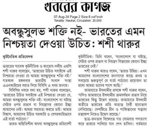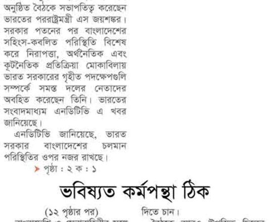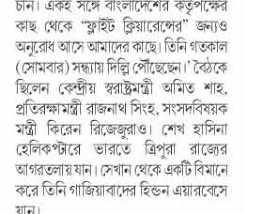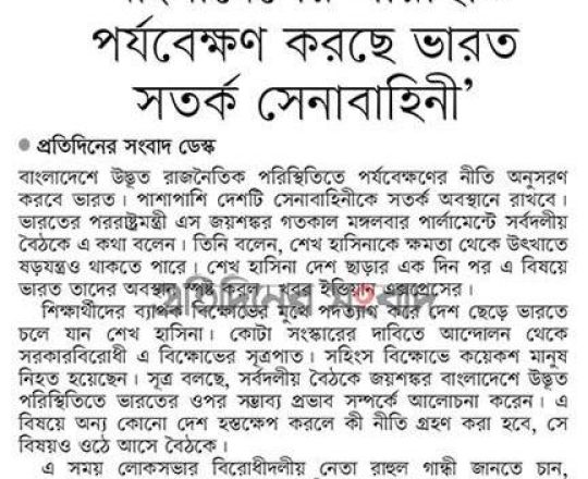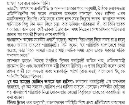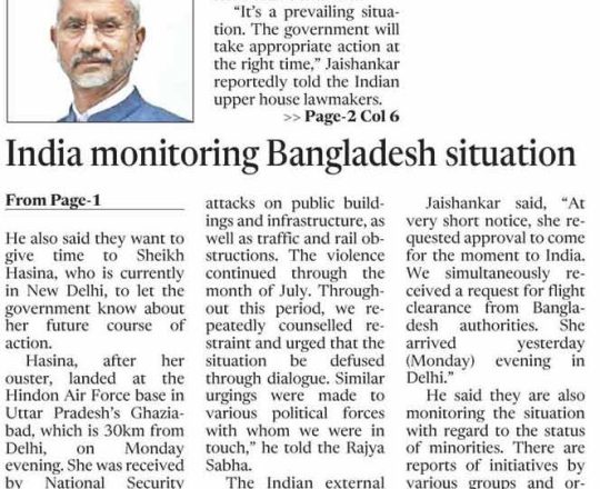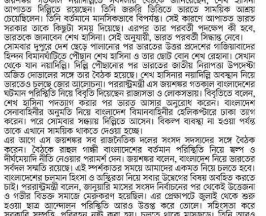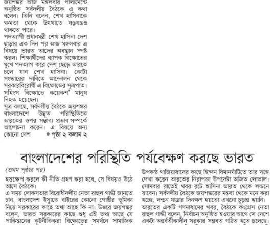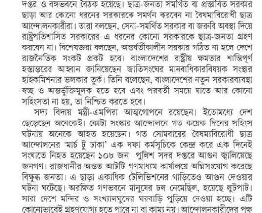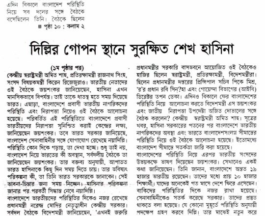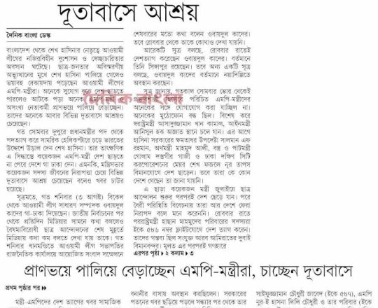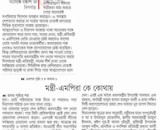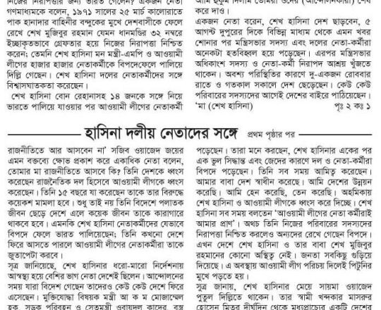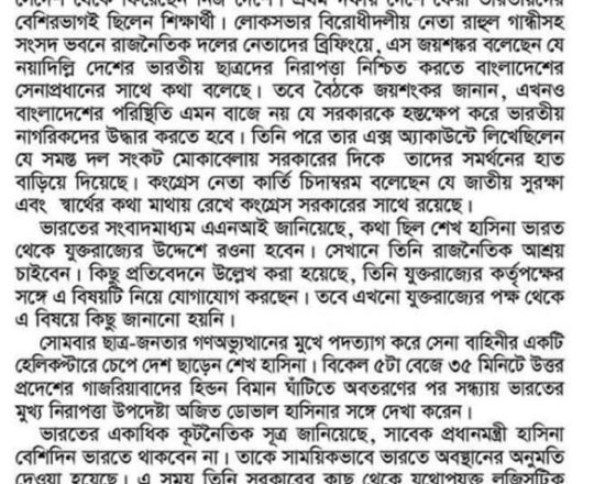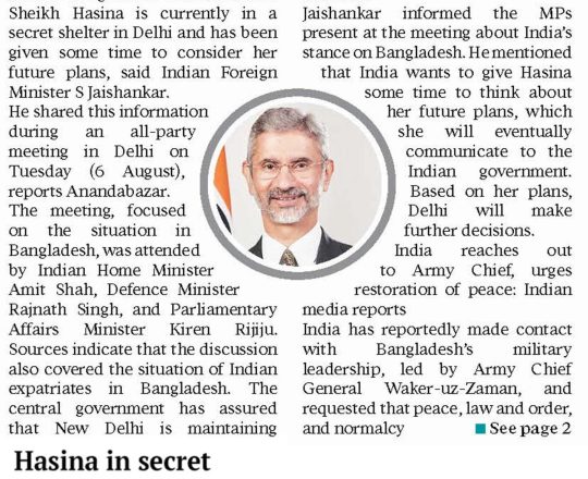 বাংলাদেশ প্রতিদিন, ৭ আগস্ট ২০২৪, শেখ হাসিনা এখনো আছেন নয়াদিল্লিতে