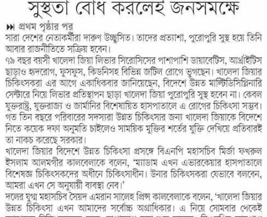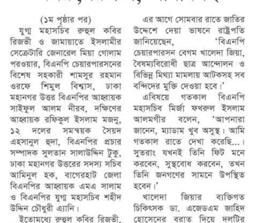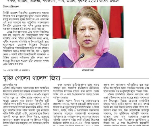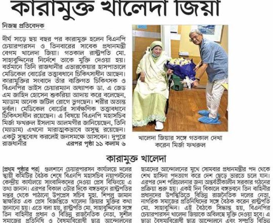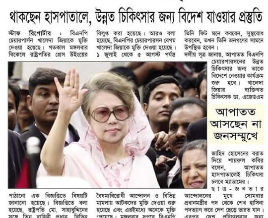 বাংলাদেশ প্রতিদিন, ৭ আগস্ট ২০২৪, কারামুক্ত খালেদা জিয়া