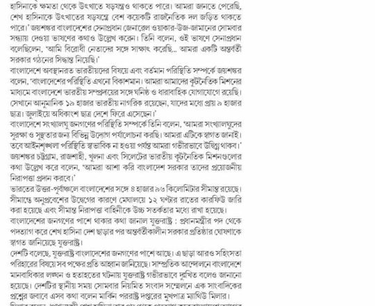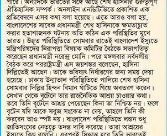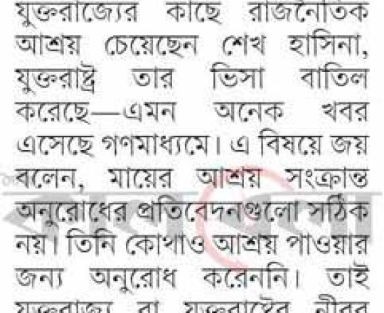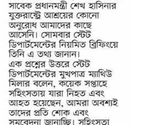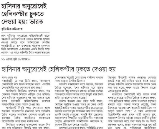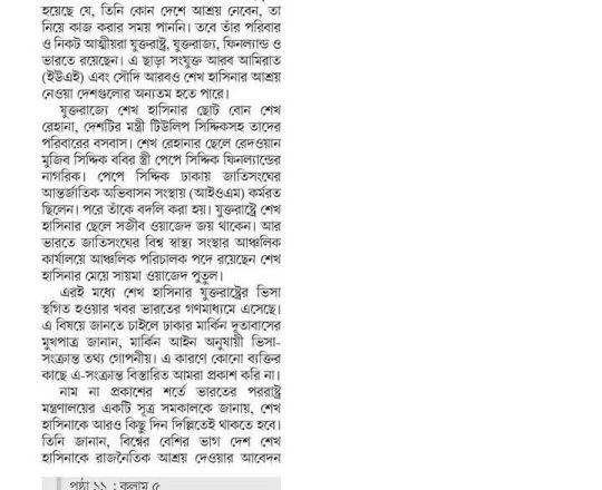 বাংলাদেশ প্রতিদিন, ৭ আগস্ট ২০২৪, শেখ হাসিনাকে আশ্রয়ের কোনো অনুরোধ আসেনি