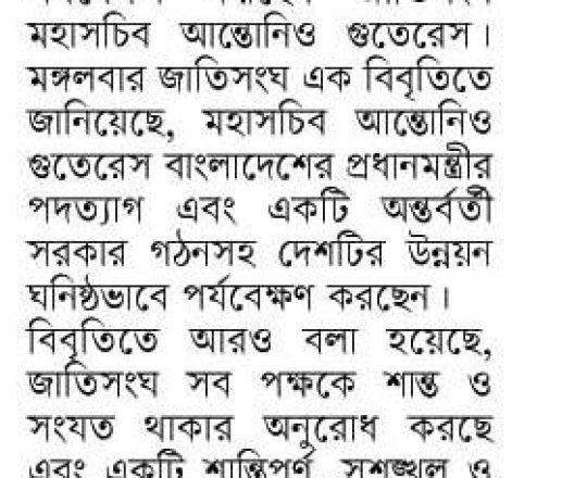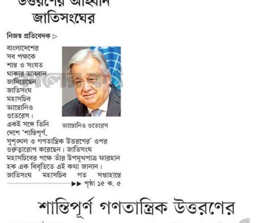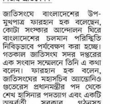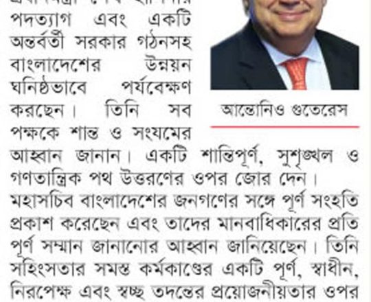 বাংলাদেশ প্রতিদিন, ৭ আগস্ট ২০২৪, পরিস্থিতি পর্যবেক্ষণ করছে জাতিসংঘ