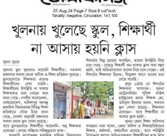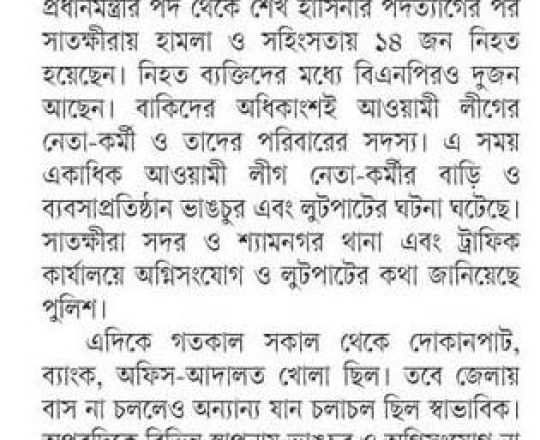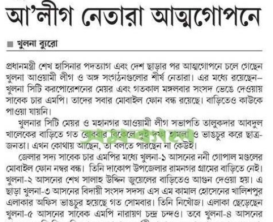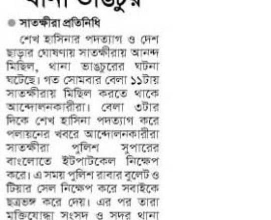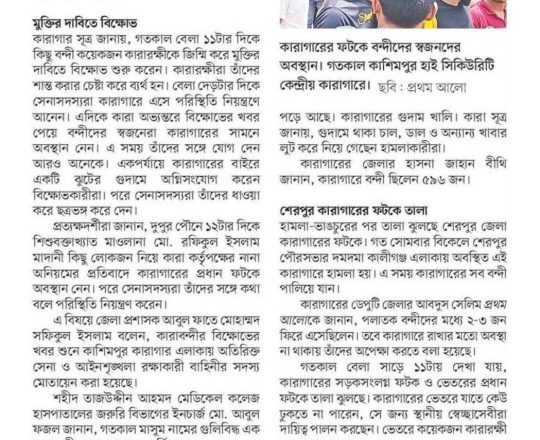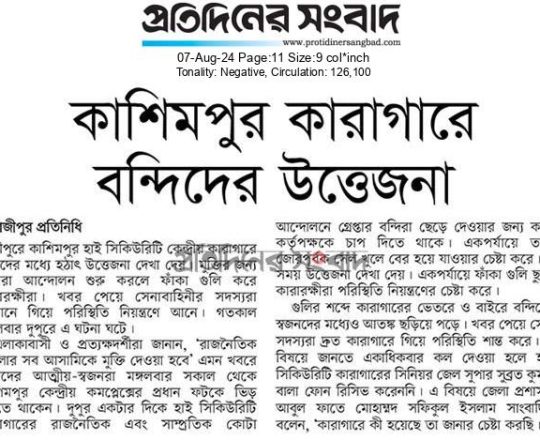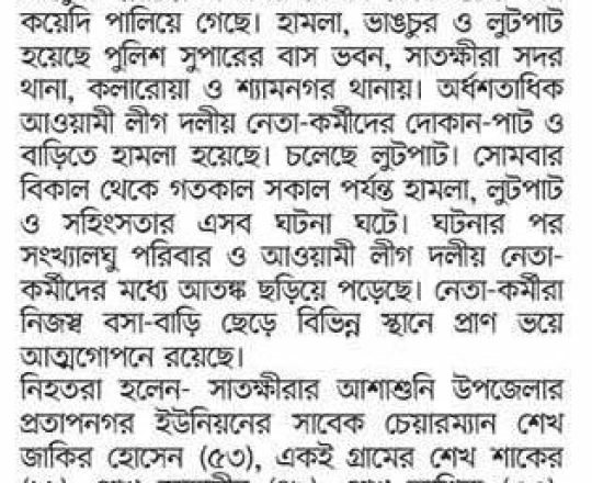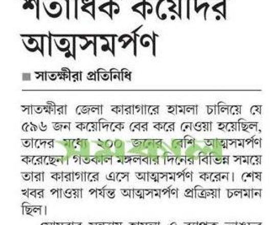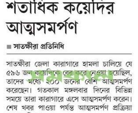 বাংলাদেশ প্রতিদিন, ৭ আগস্ট ২০২৪, সাতক্ষীরা কারাগার থেকে পালালেন ৫৮৮ কয়েদি