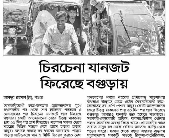 বাংলাদেশ প্রতিদিন, ৭ আগস্ট ২০২৪, চিরচেনা যানজট ফিরেছে বগুড়ায়