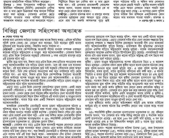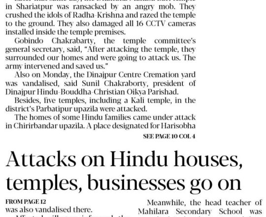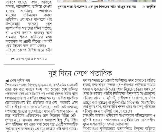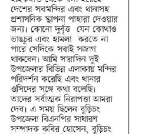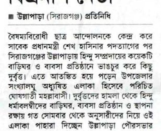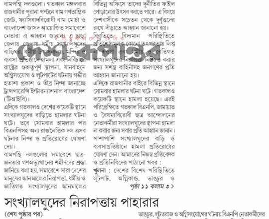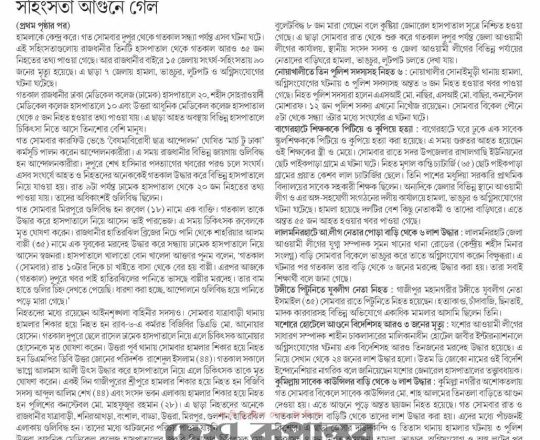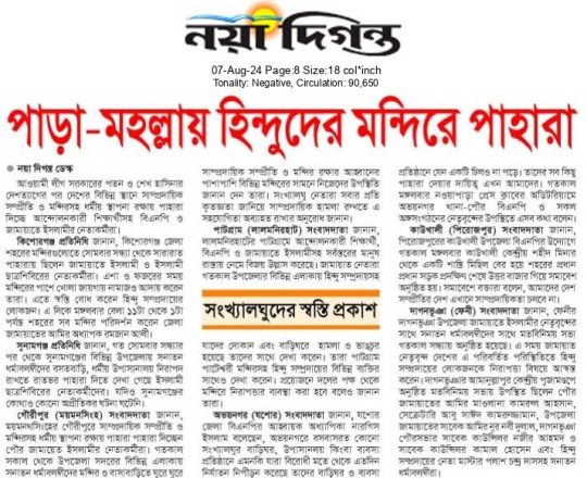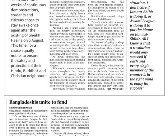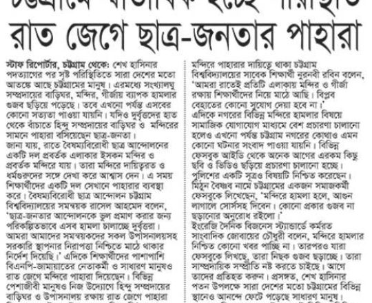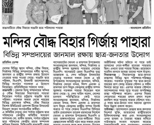 বাংলাদেশ প্রতিদিন, ৭ আগস্ট ২০২৪, মন্দির বৌদ্ধ বিহার গির্জায় পাহারা