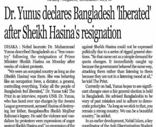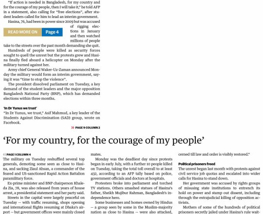 Asian Age, 7 August 2024, Dr Yunus to lead interim govt