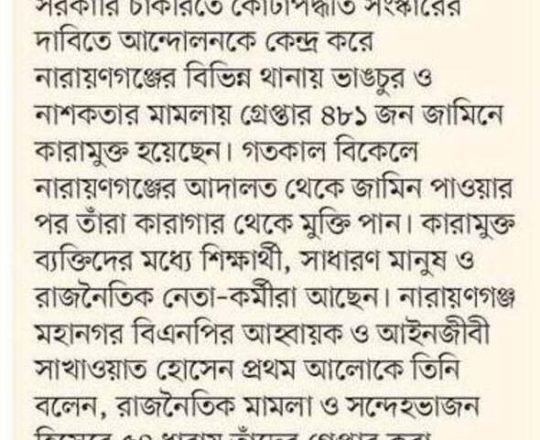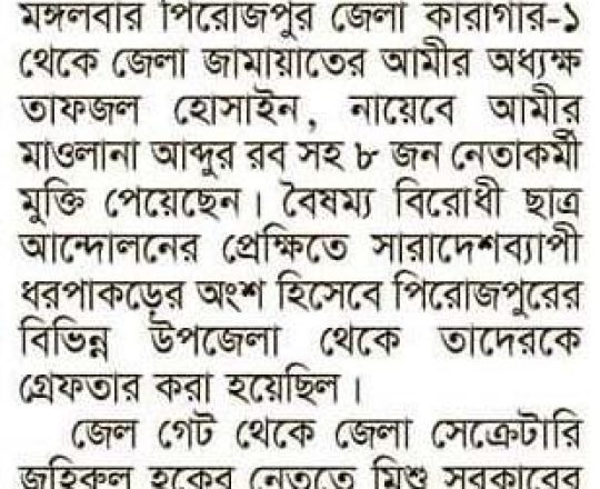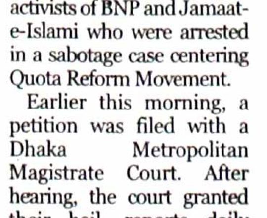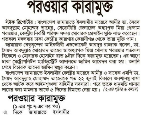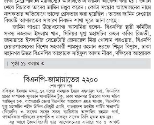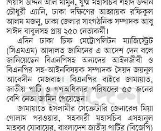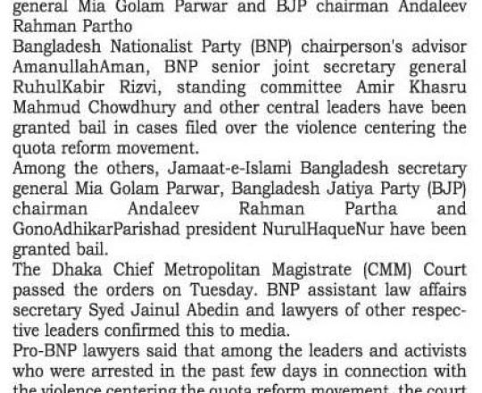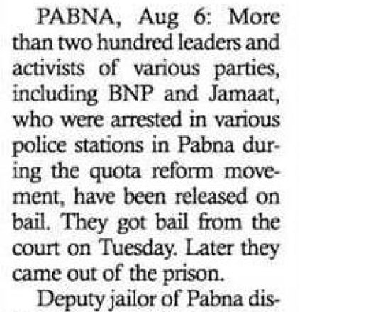 Bangladesh Today, 7 August 2024, 1,000 BNP-Jamaat men get bail