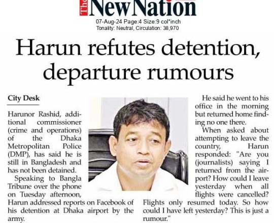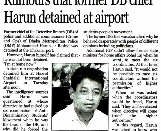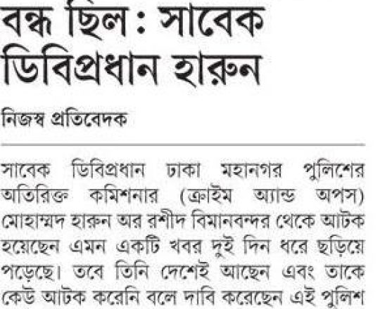Bangladesh Today, 7 August 2024, Rumours that former DB chief Harun detained at airport