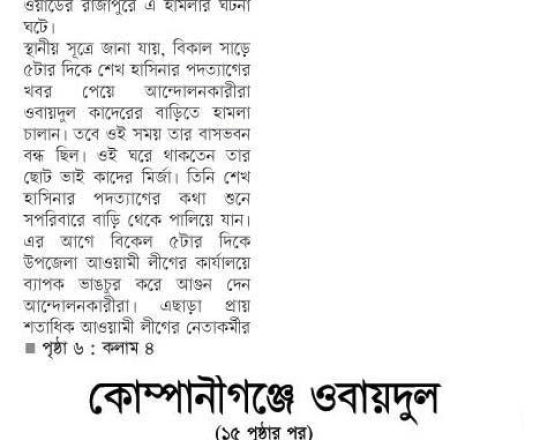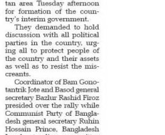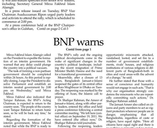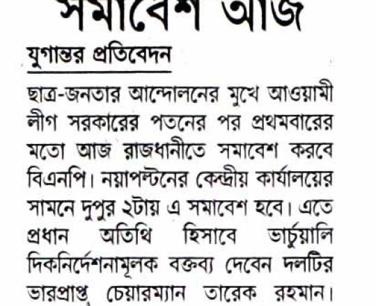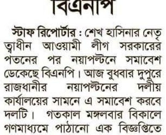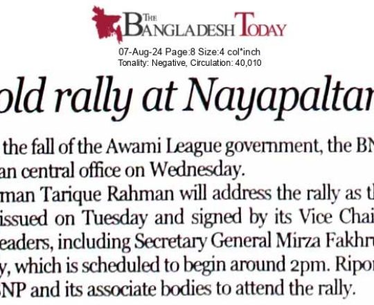 Asian Age, 7 August 2024, BNP to hold rally at Nayapaltan today