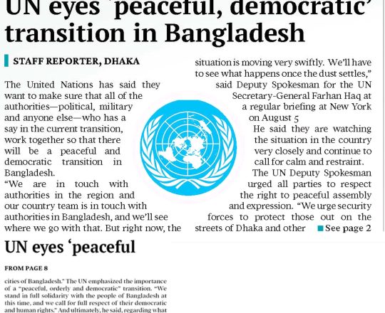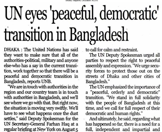Bangladesh Today, 7 August 2024, UN eyes 'peaceful, democratic' transition in Bangladesh