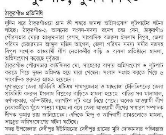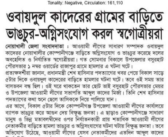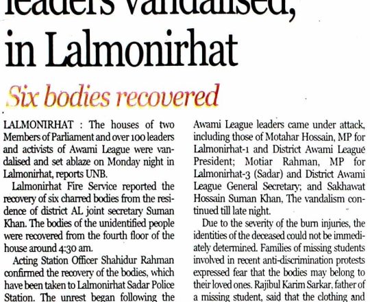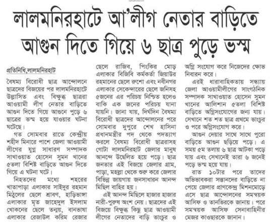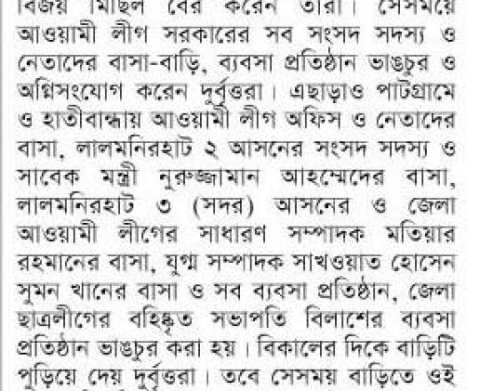 Bangladesh Today, 7 August 2024, Houses of over 100 AL leaders vandalised, in Lalmonirhat