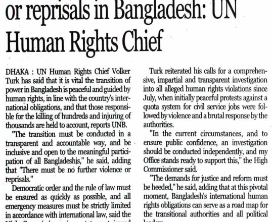 Bangladesh Today, 7 August 2024, There must be no further violence or reprisals in Bangladesh: UN Human Rights Chief
