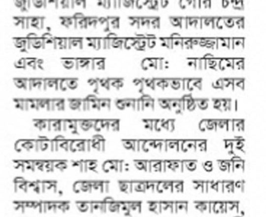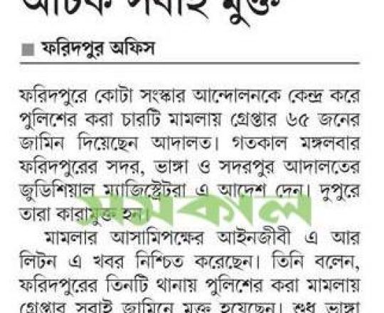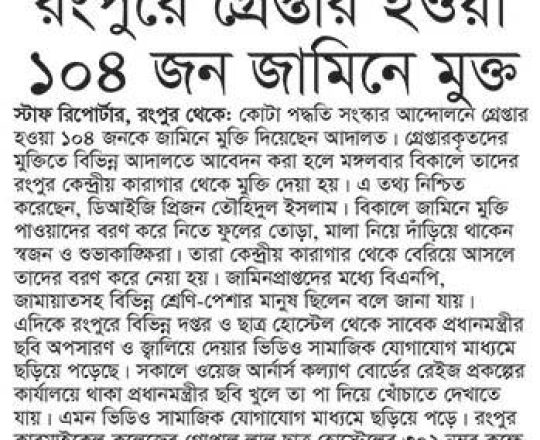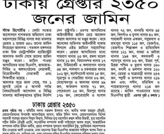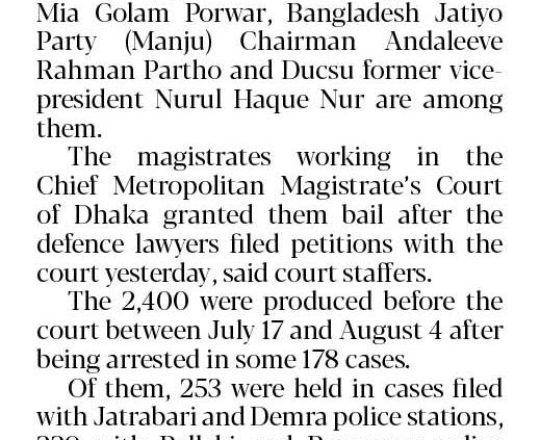 ভোরের ডাক, ৭ আগস্ট ২০২৪, ঢাকায় গ্রেপ্তার ২৩৫০ জনের জামিন