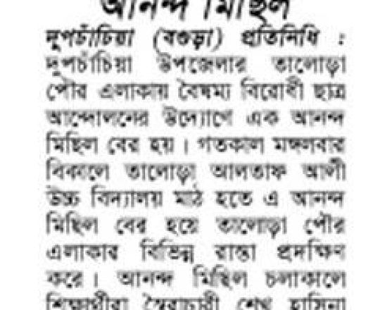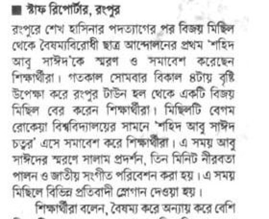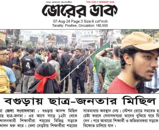 ভোরের ডাক, ৭ আগস্ট ২০২৪, বগুড়ায় ছাত্র-জনতার মিছিল