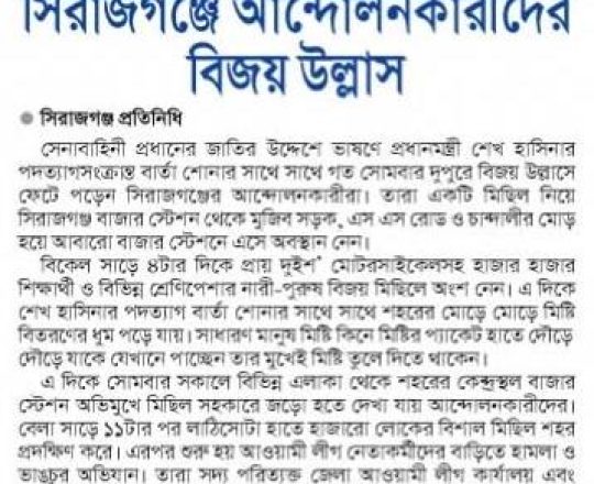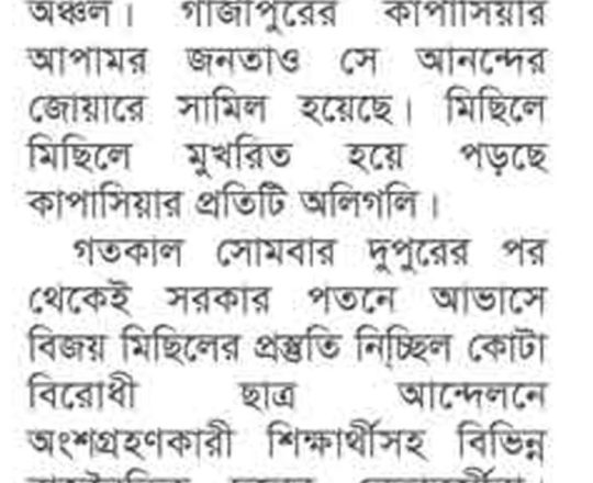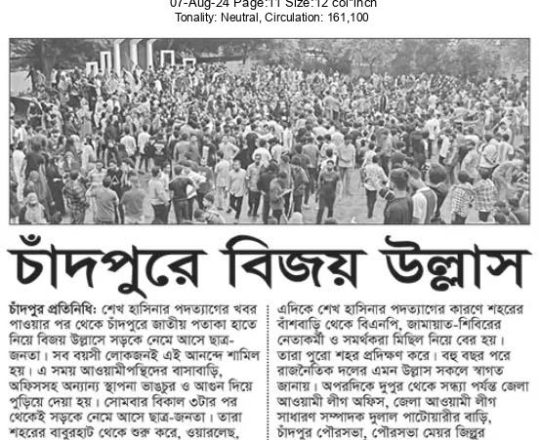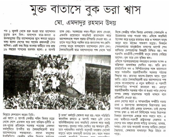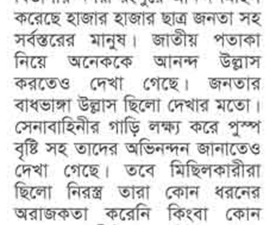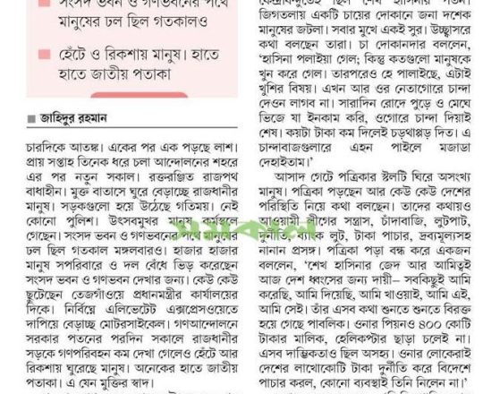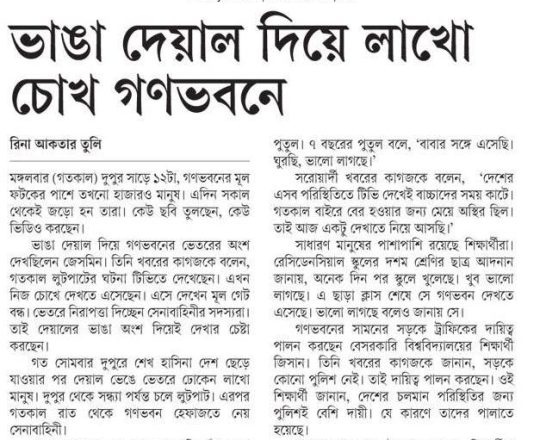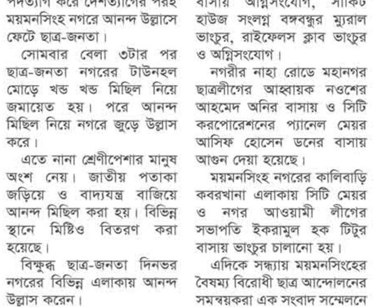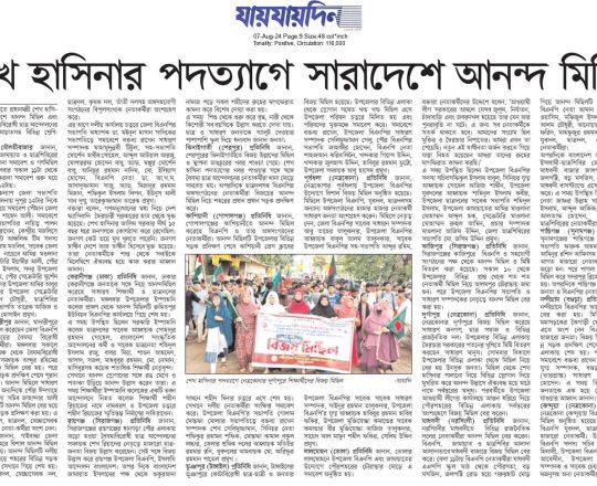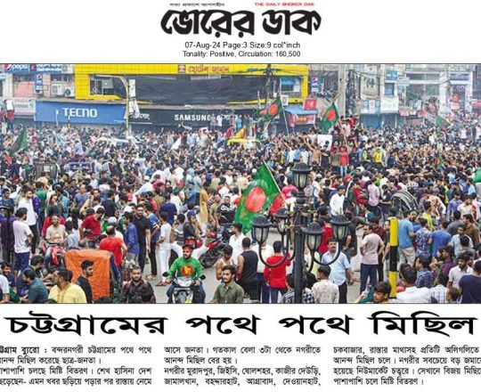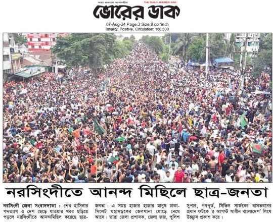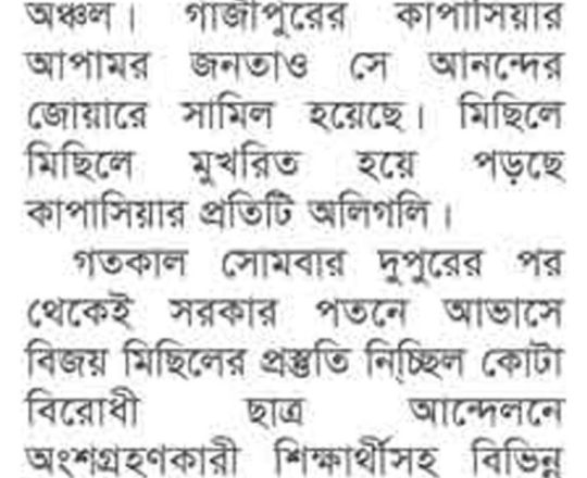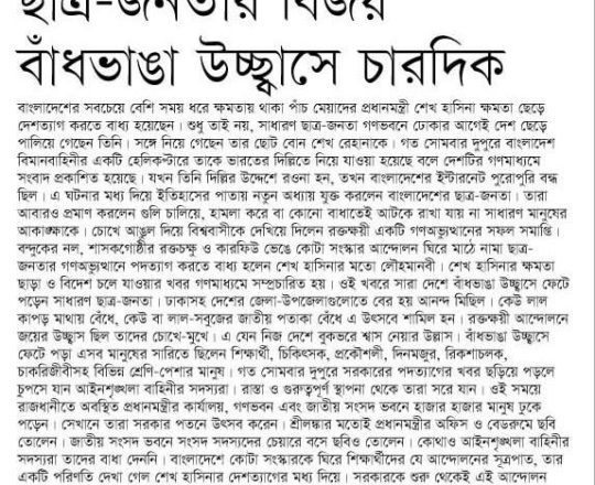 বাংলাদেশ প্রতিদিন, ৭ আগস্ট ২০২৪, ছাত্র-জনতার উল্লাস