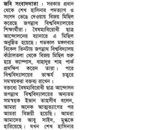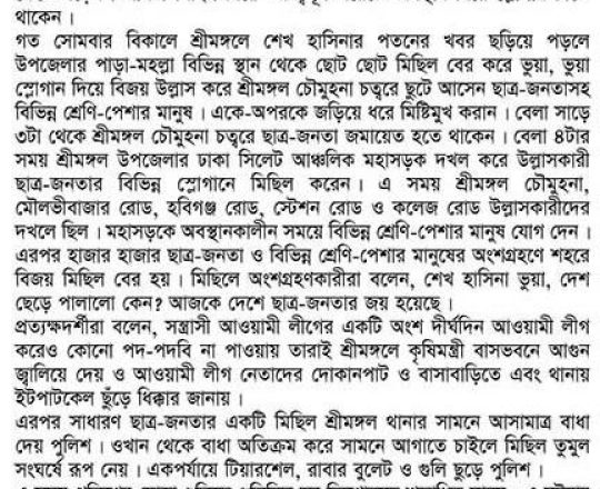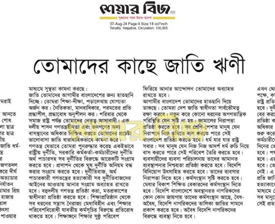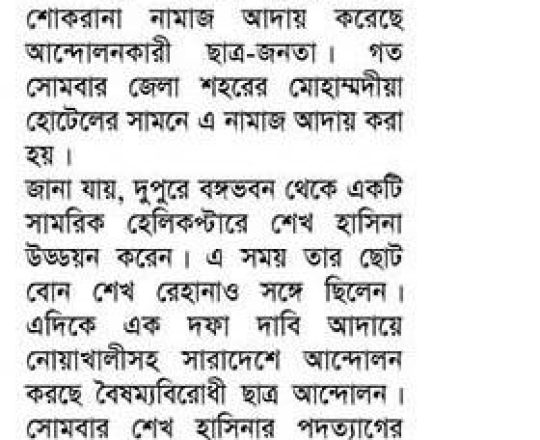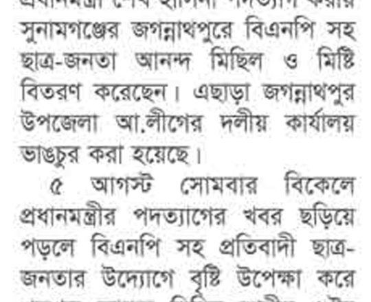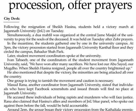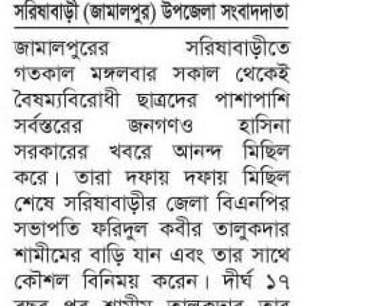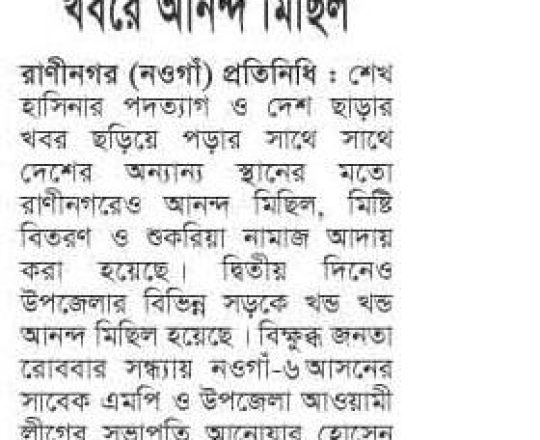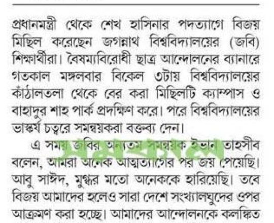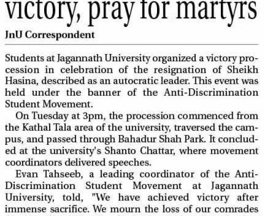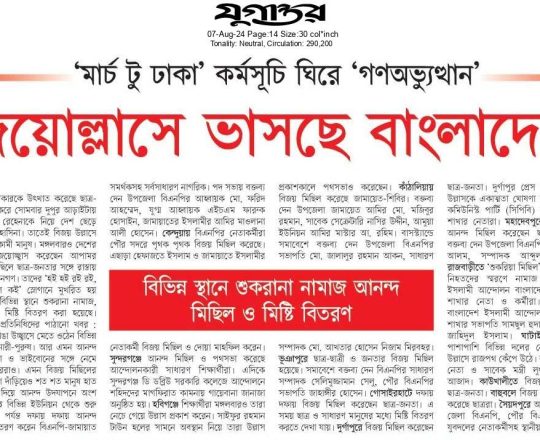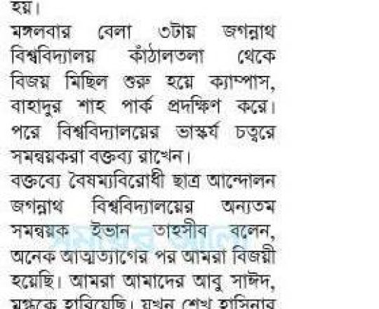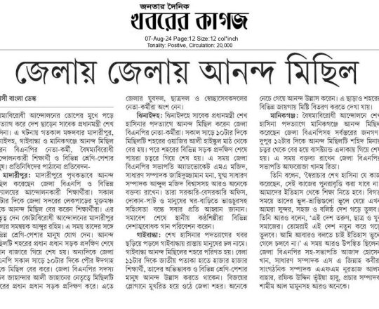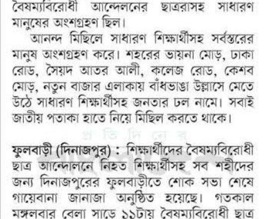 বাংলাদেশ প্রতিদিন, ৭ আগস্ট ২০২৪, ছাত্র-জনতার উল্লাস