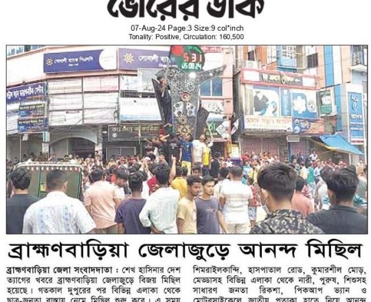 ভোরের ডাক, ৭ আগস্ট ২০২৪, ব্রাহ্মণবাড়িয়া জেলাজুড়ে আনন্দ মিছিল