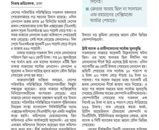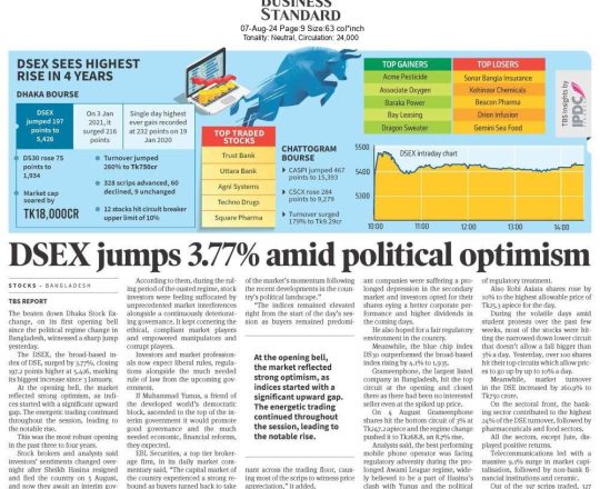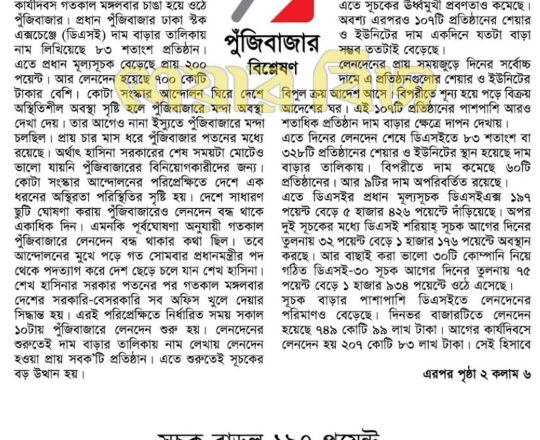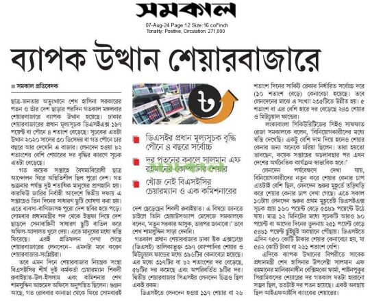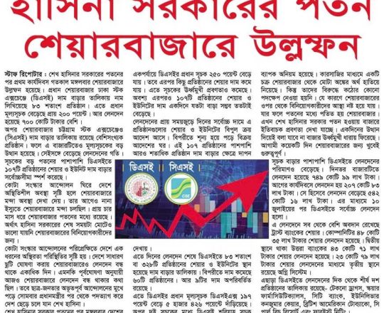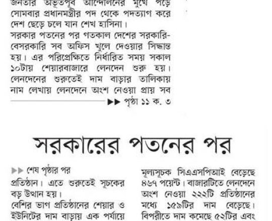 ভোরের ডাক, ৭ আগস্ট ২০২৪, হাসিনা সরকারের পতন শেয়ারবাজারে উল্লম্ফন