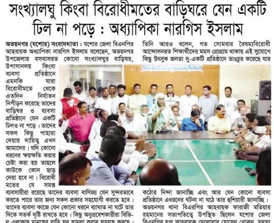 ভোরের ডাক, ৭ আগস্ট ২০২৪, সংখ্যালঘু কিংবা বিরোধীমতের বাড়িঘরে যেন একটি ঢিল না পড়ে: অধ্যাপিকা নারগিস ইসলাম
