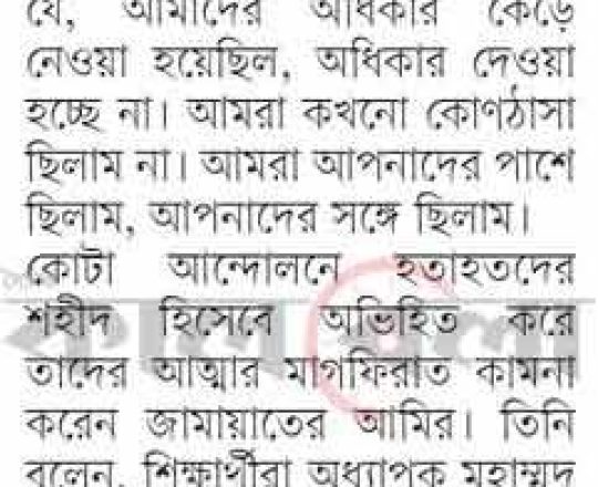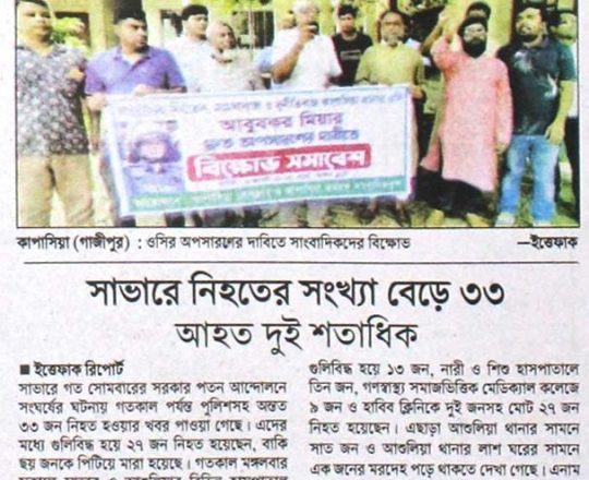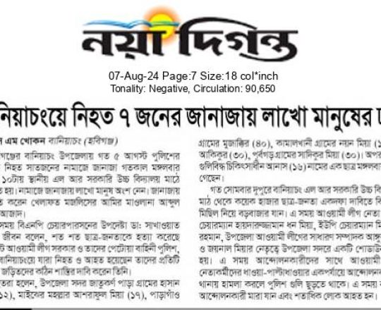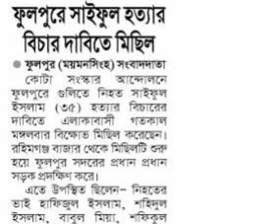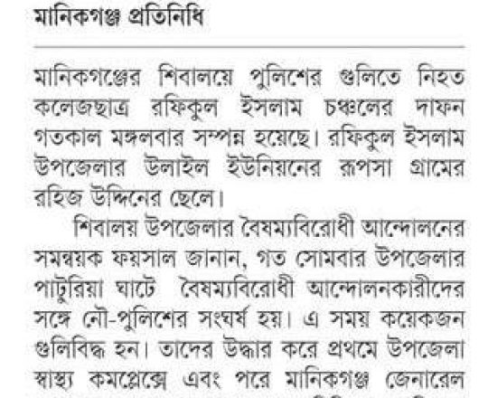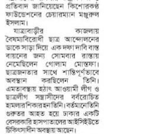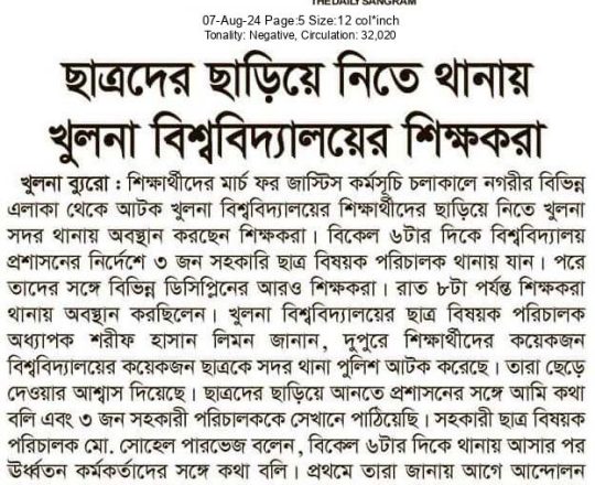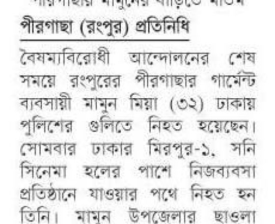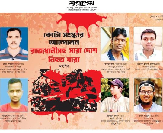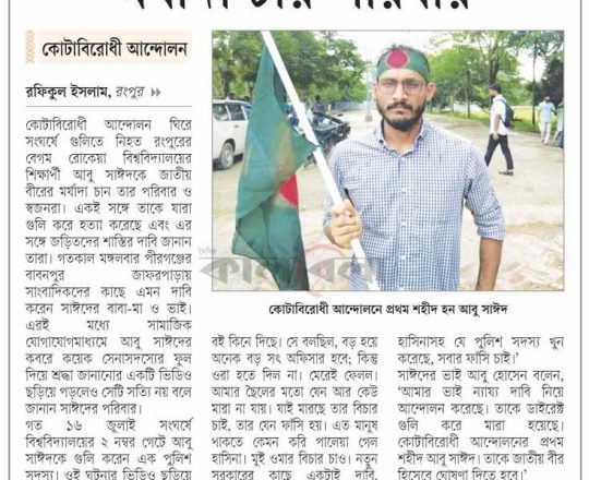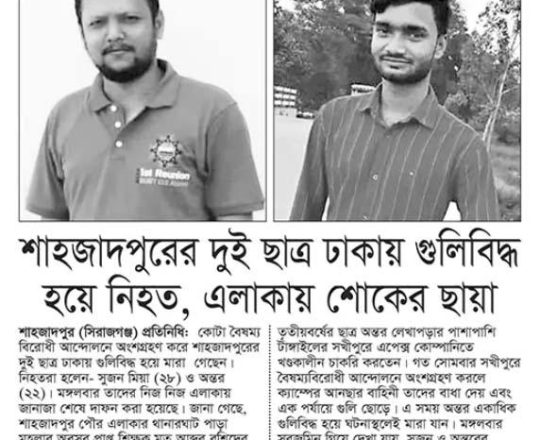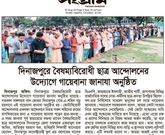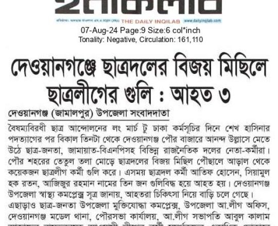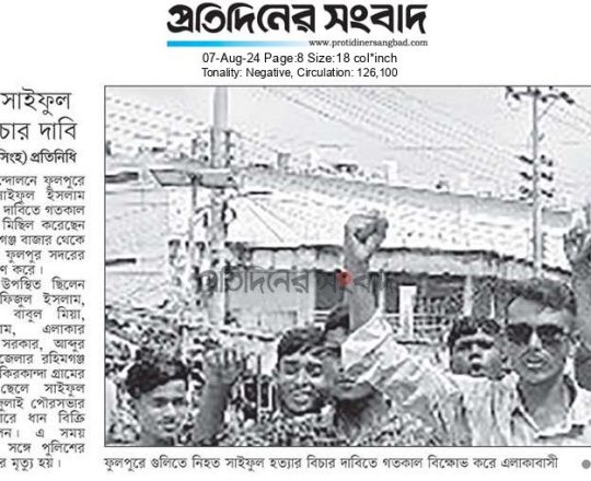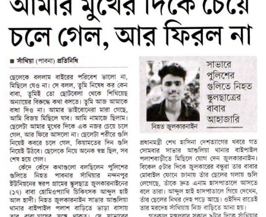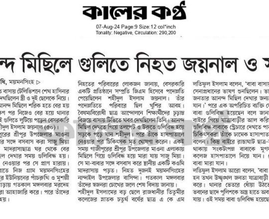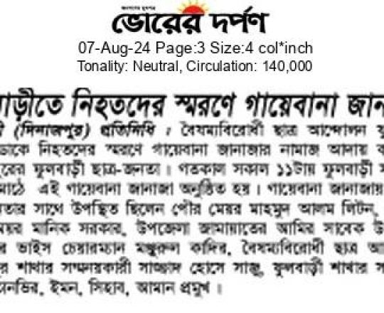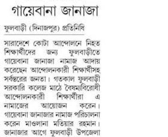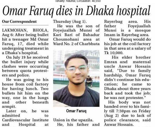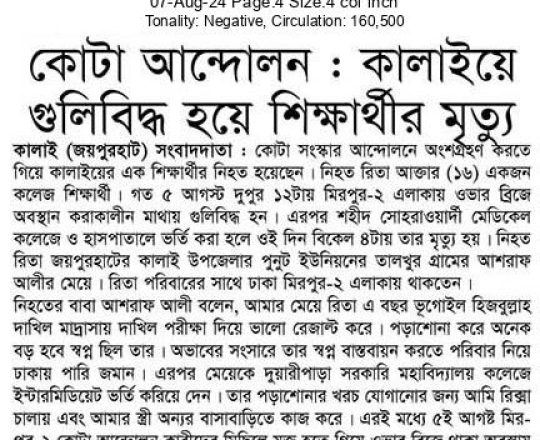 ভোরের ডাক, ৭ আগস্ট ২০২৪, কোটা আন্দোলন: কালাইয়ে গুলিবিদ্ধ হয়ে শিক্ষার্থীর মৃত্যু