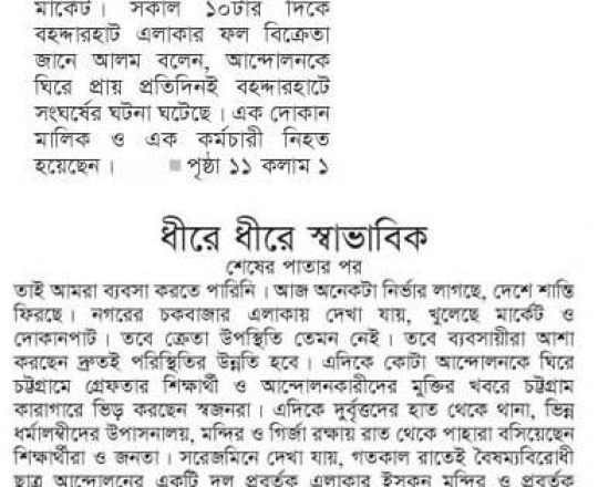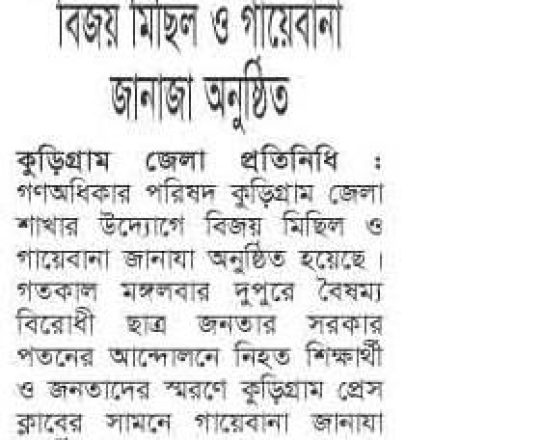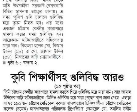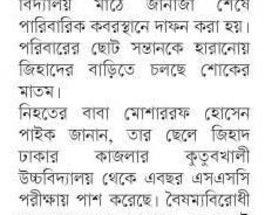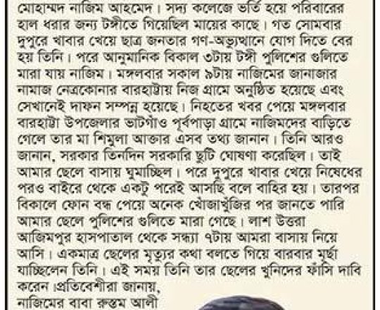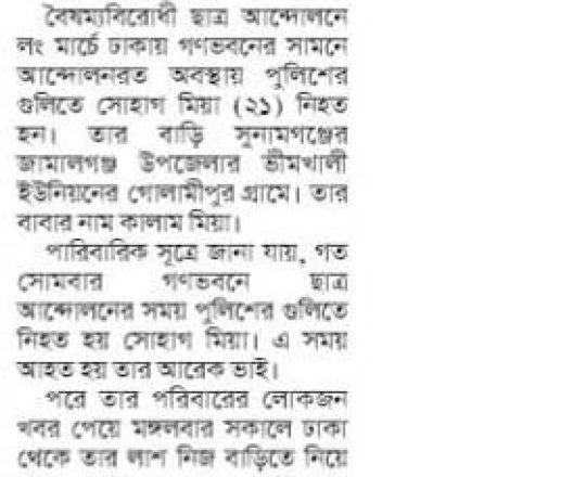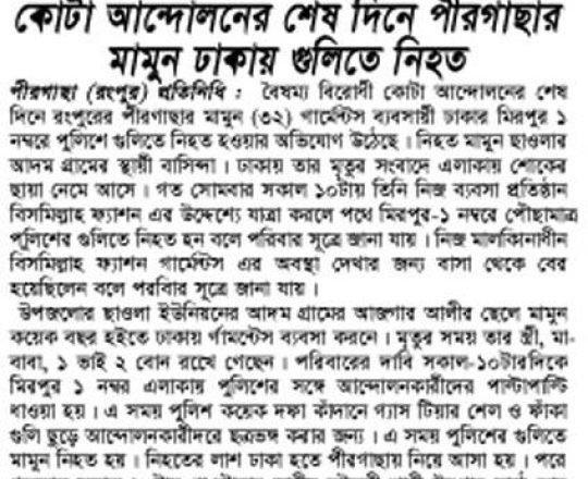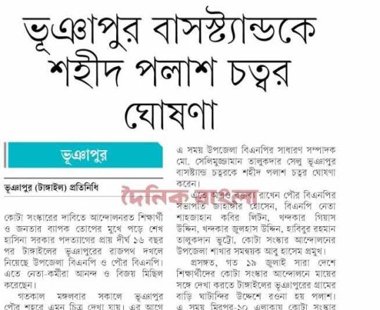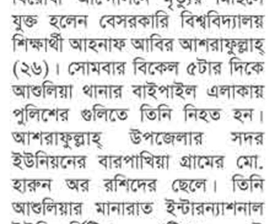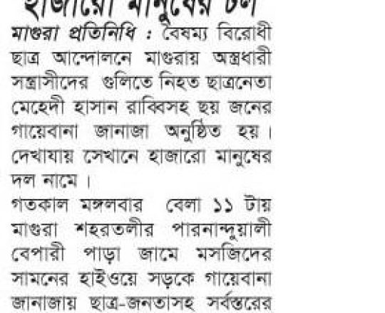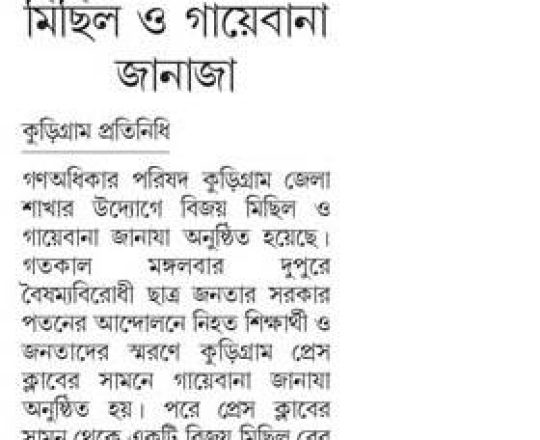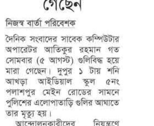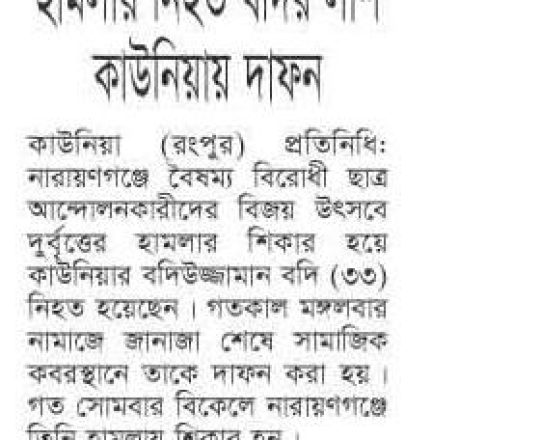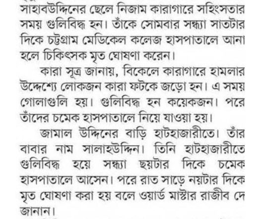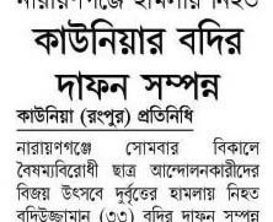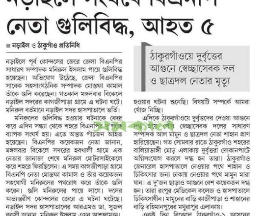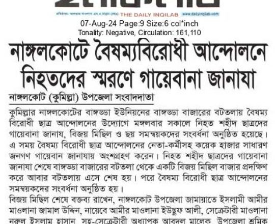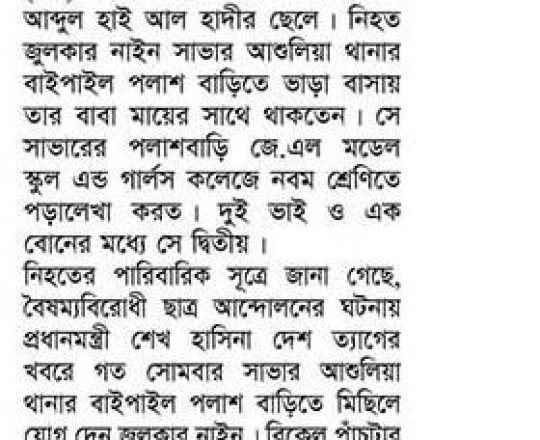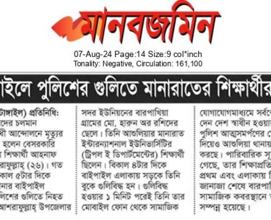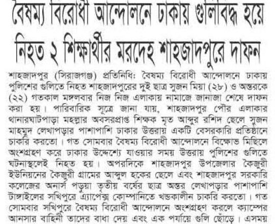 ভোরের ডাক, ৭ আগস্ট ২০২৪, কোটা আন্দোলন: কালাইয়ে গুলিবিদ্ধ হয়ে শিক্ষার্থীর মৃত্যু